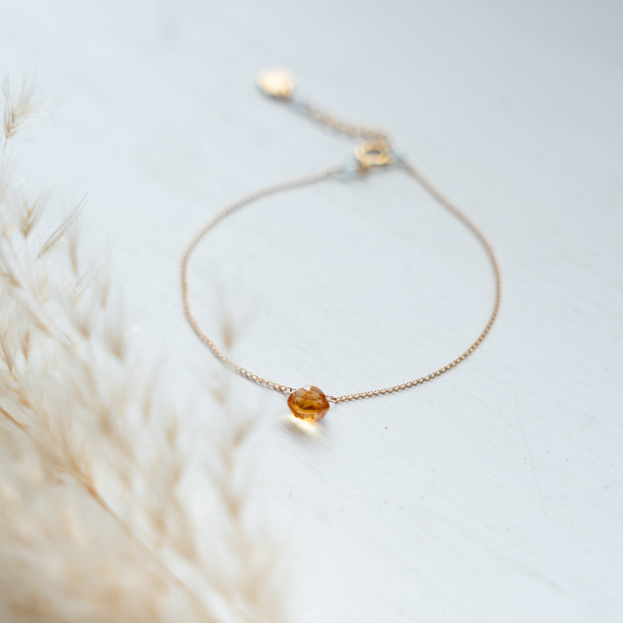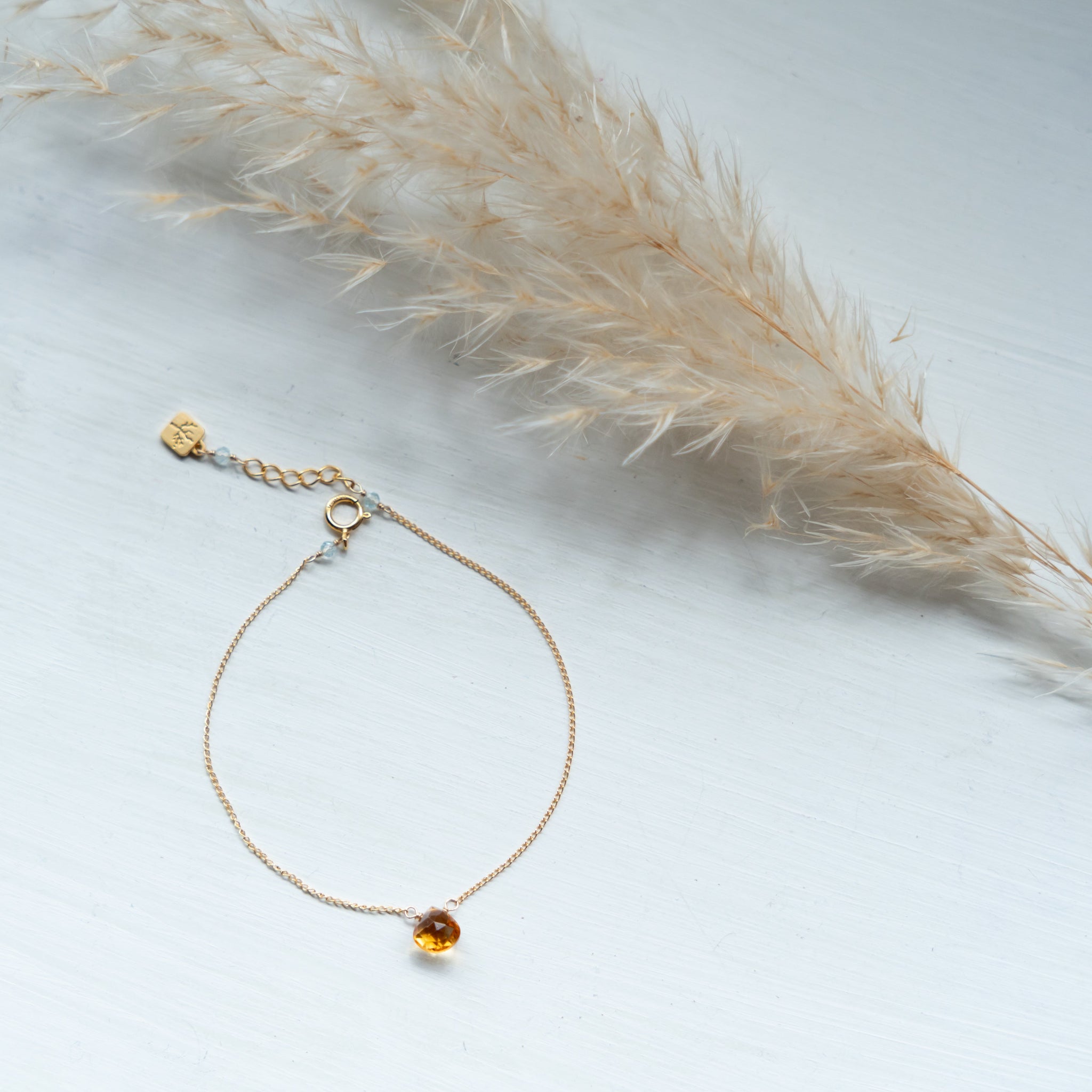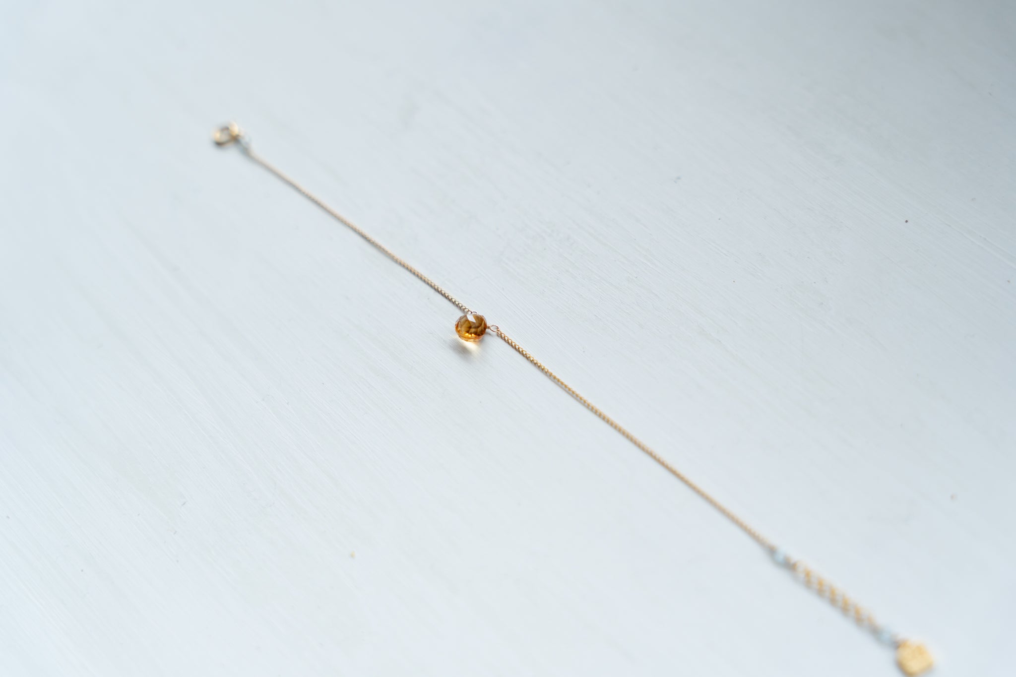 褐色味がかったオレンジが華やかすぎず、太陽を思わせるような活気と明るさを与えてくれるブレスレットです。