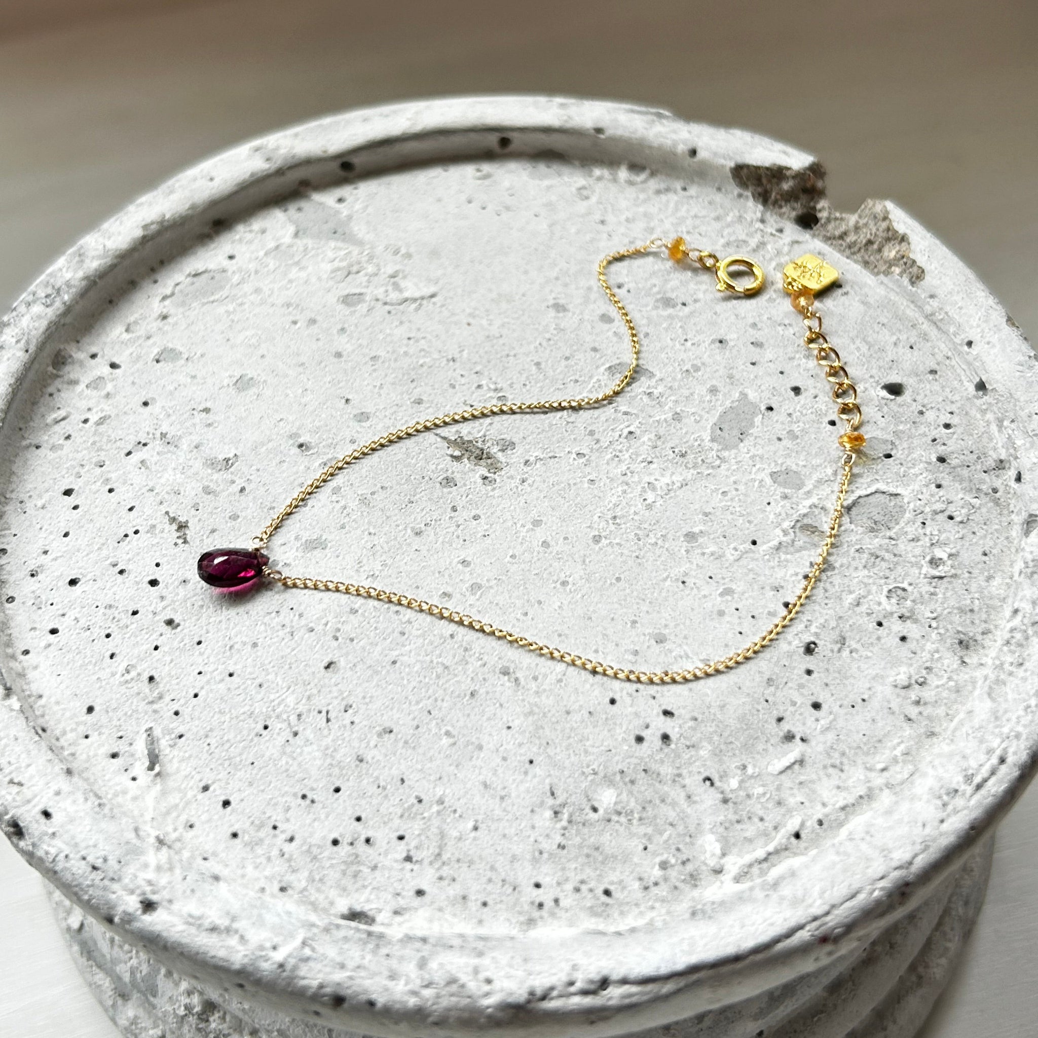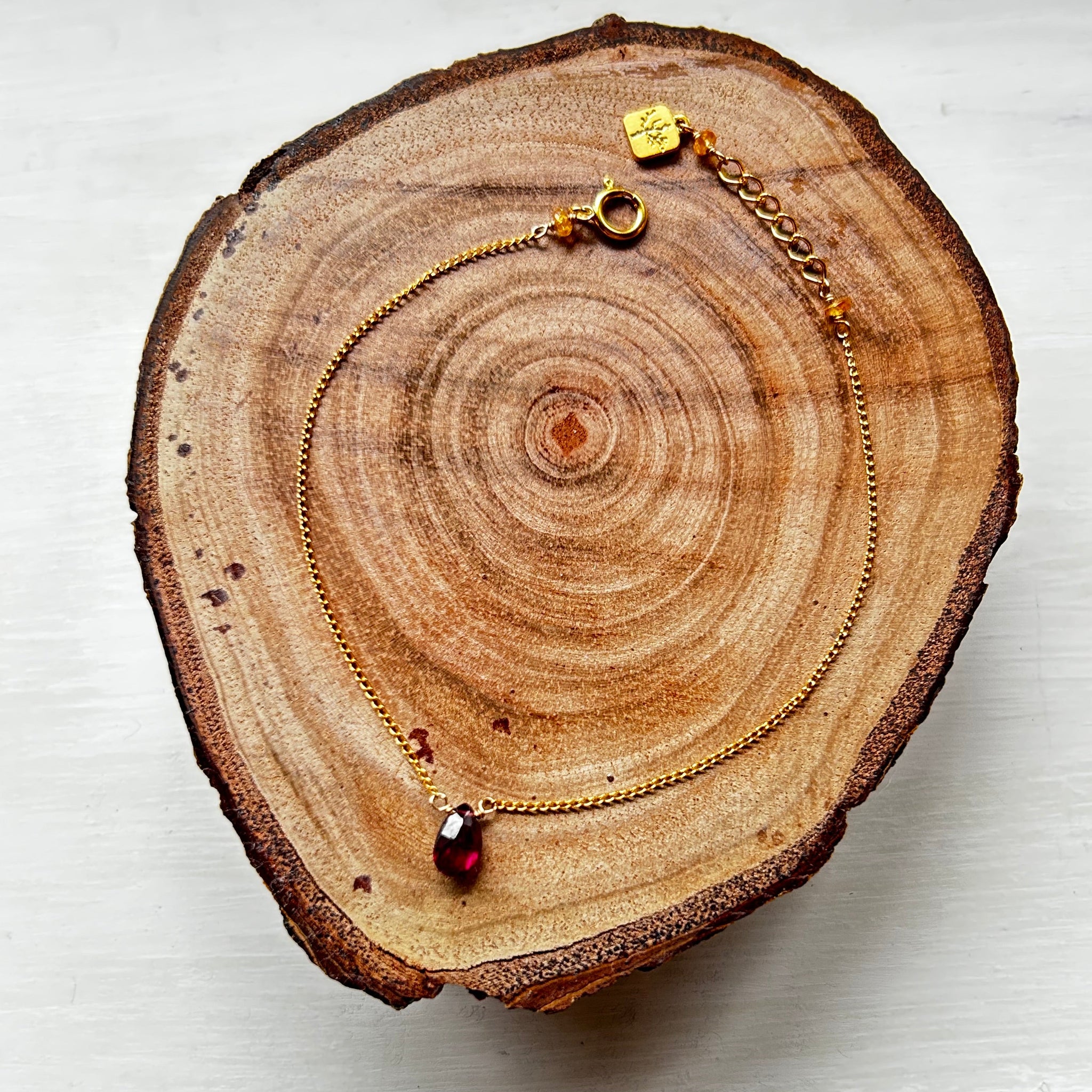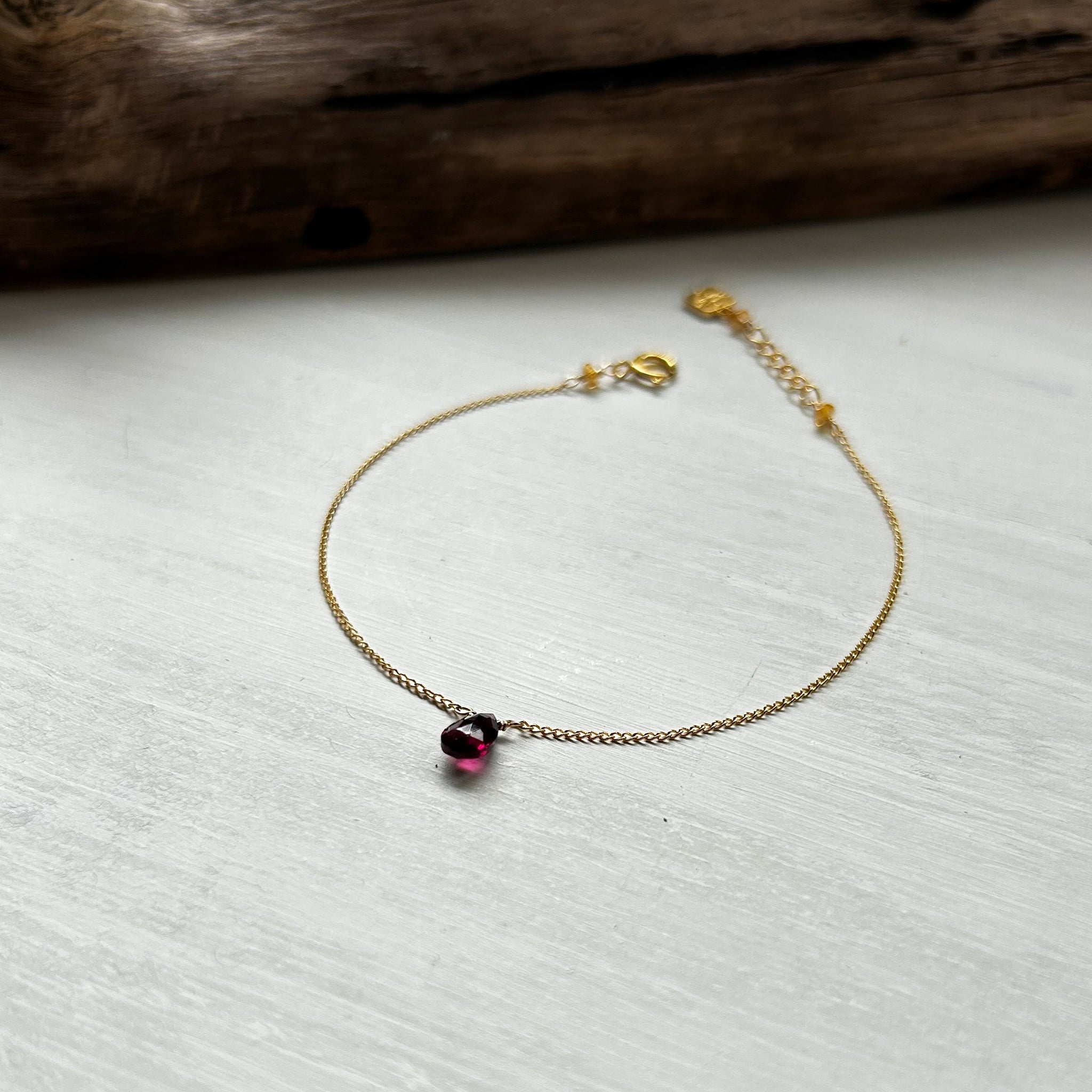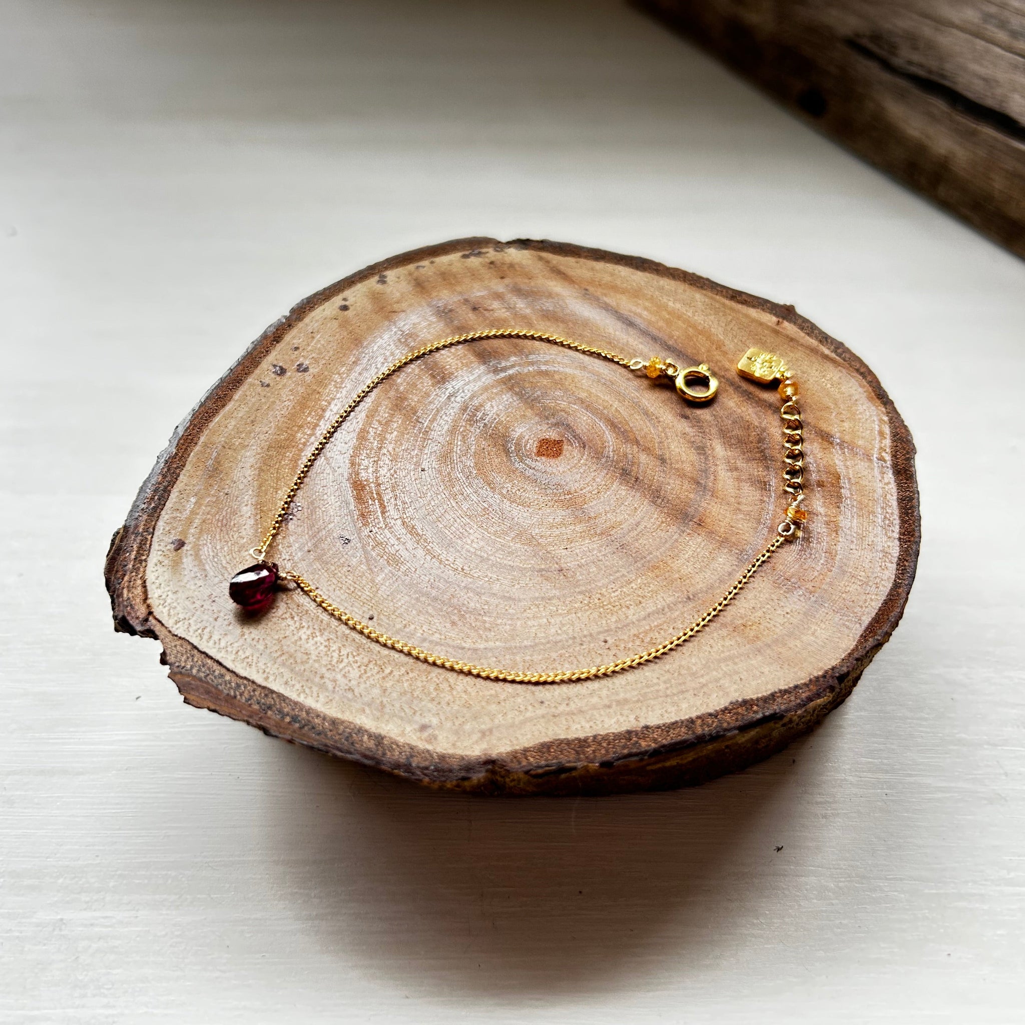こちらのブレスレットには深い赤色のガーネットを選びました。