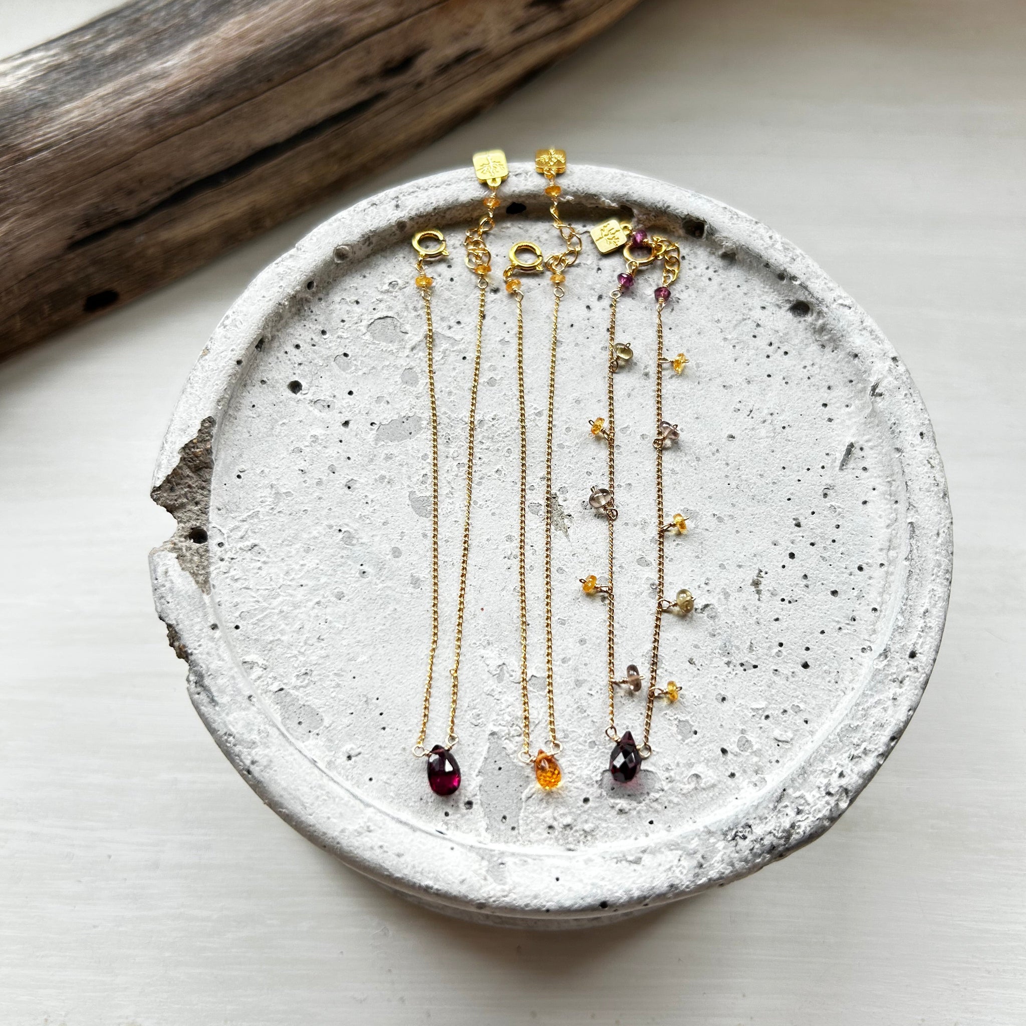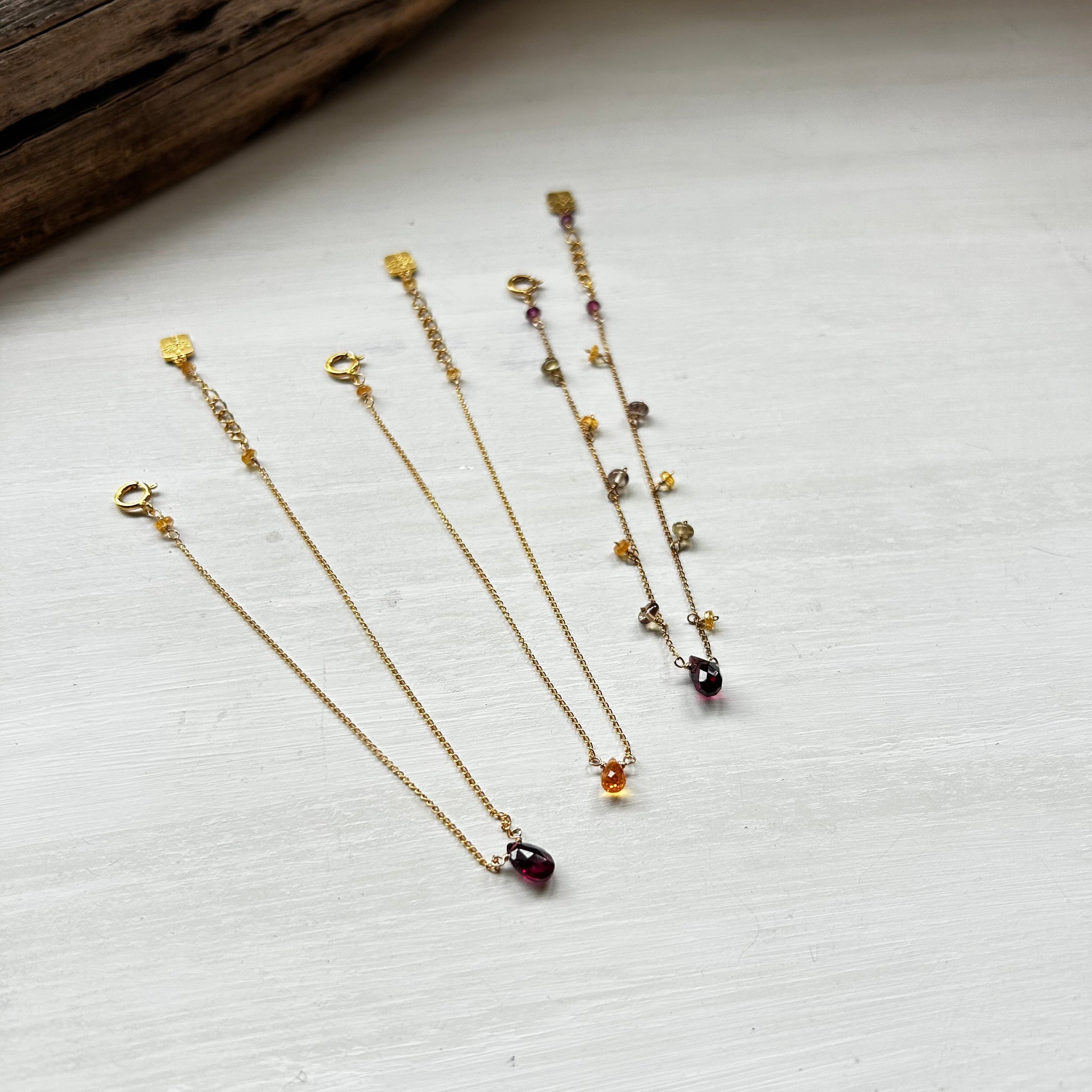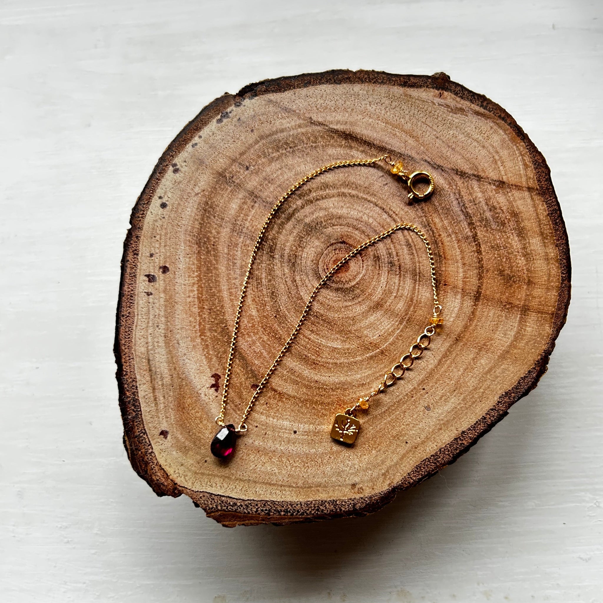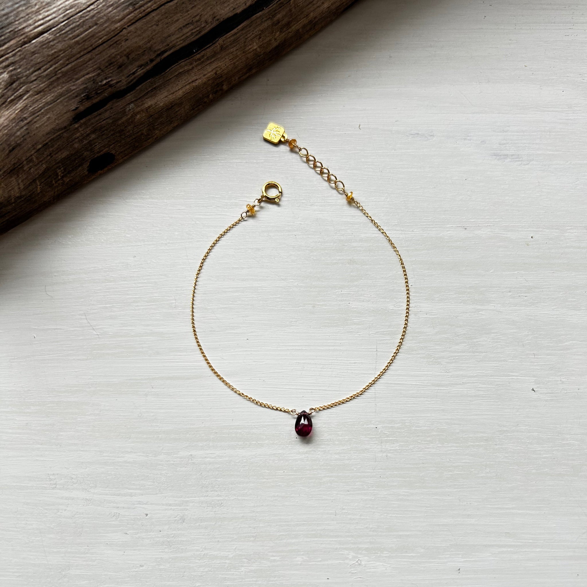 こちらのブレスレットには深い赤色のガーネットを選びました。