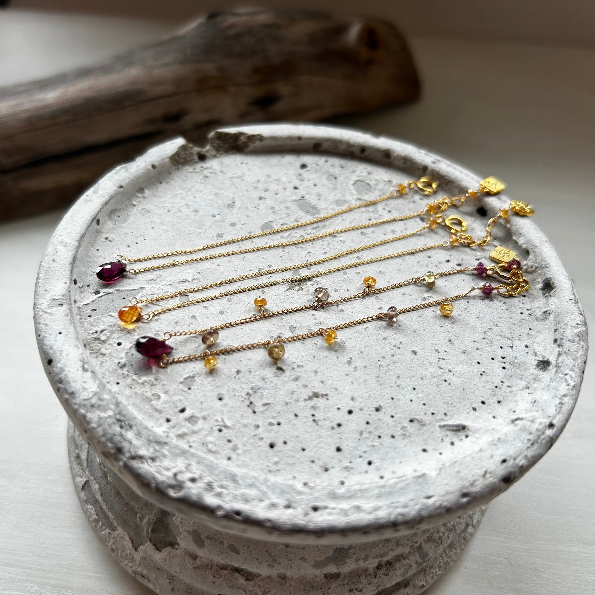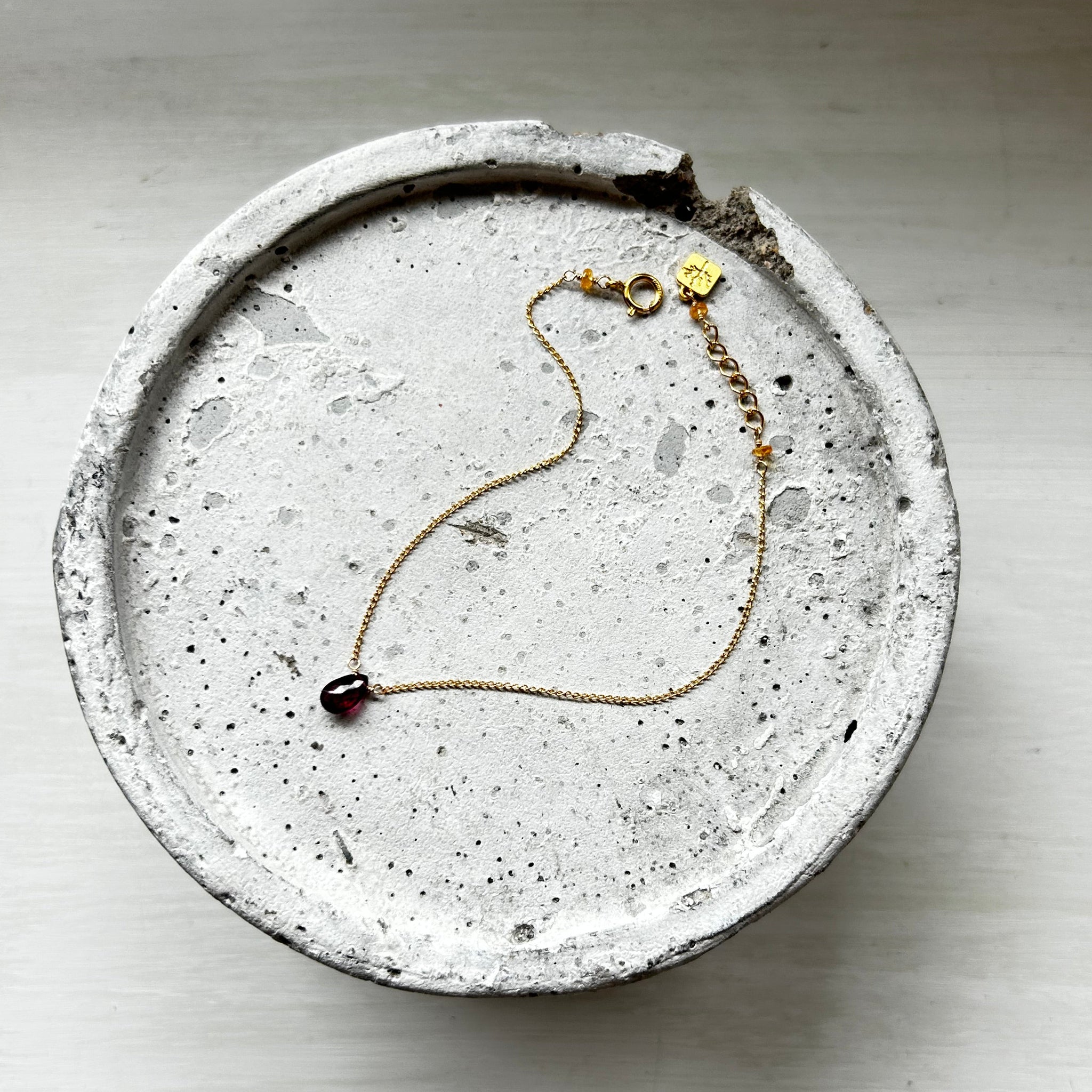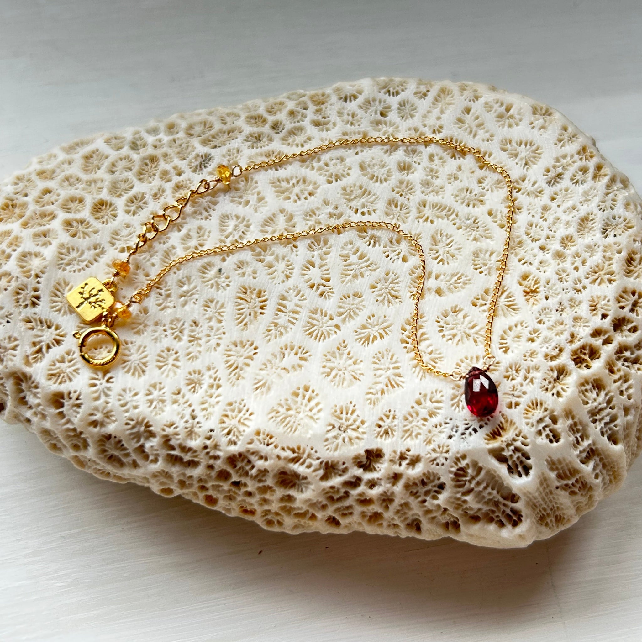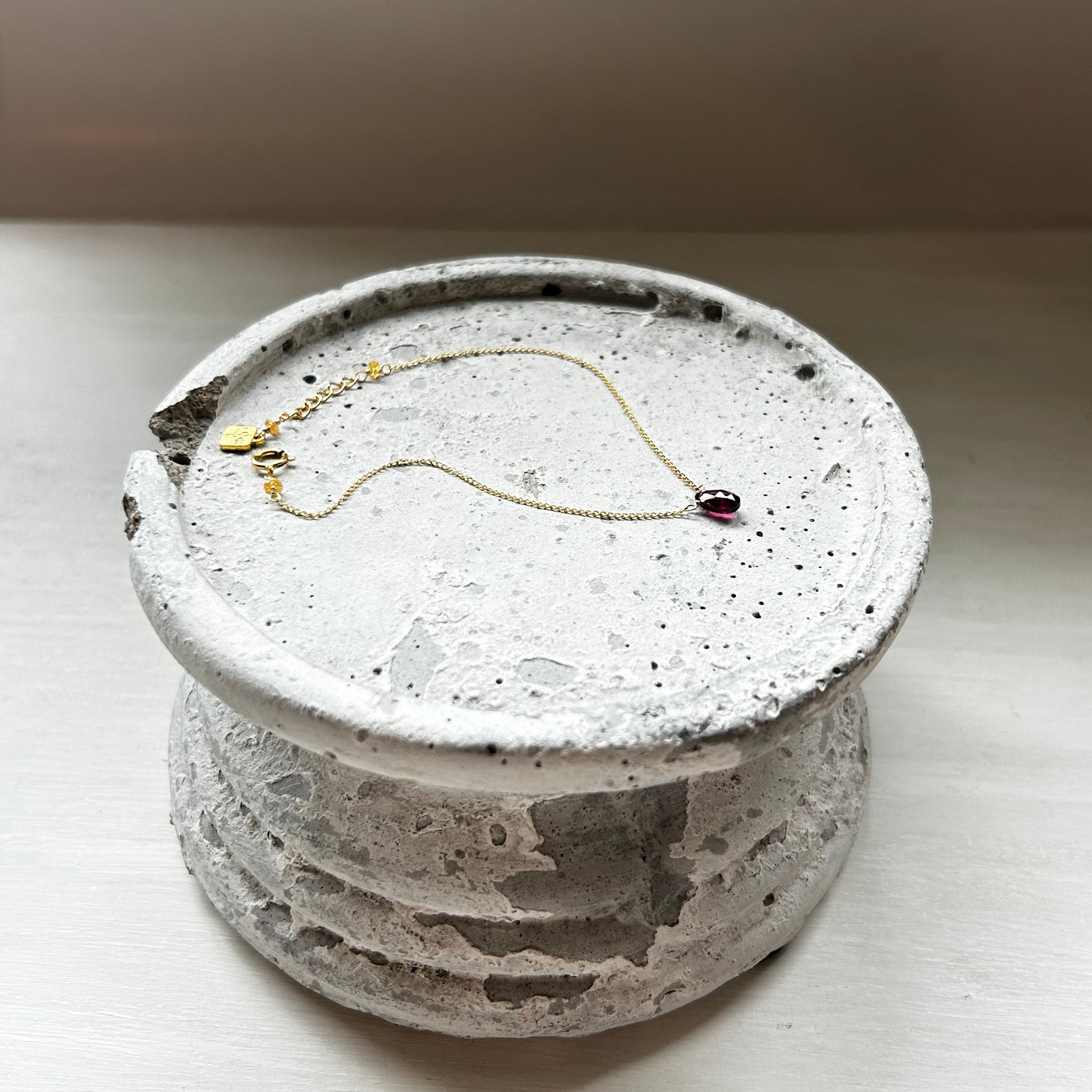 こちらのブレスレットには深い赤色のガーネットを選びました。
