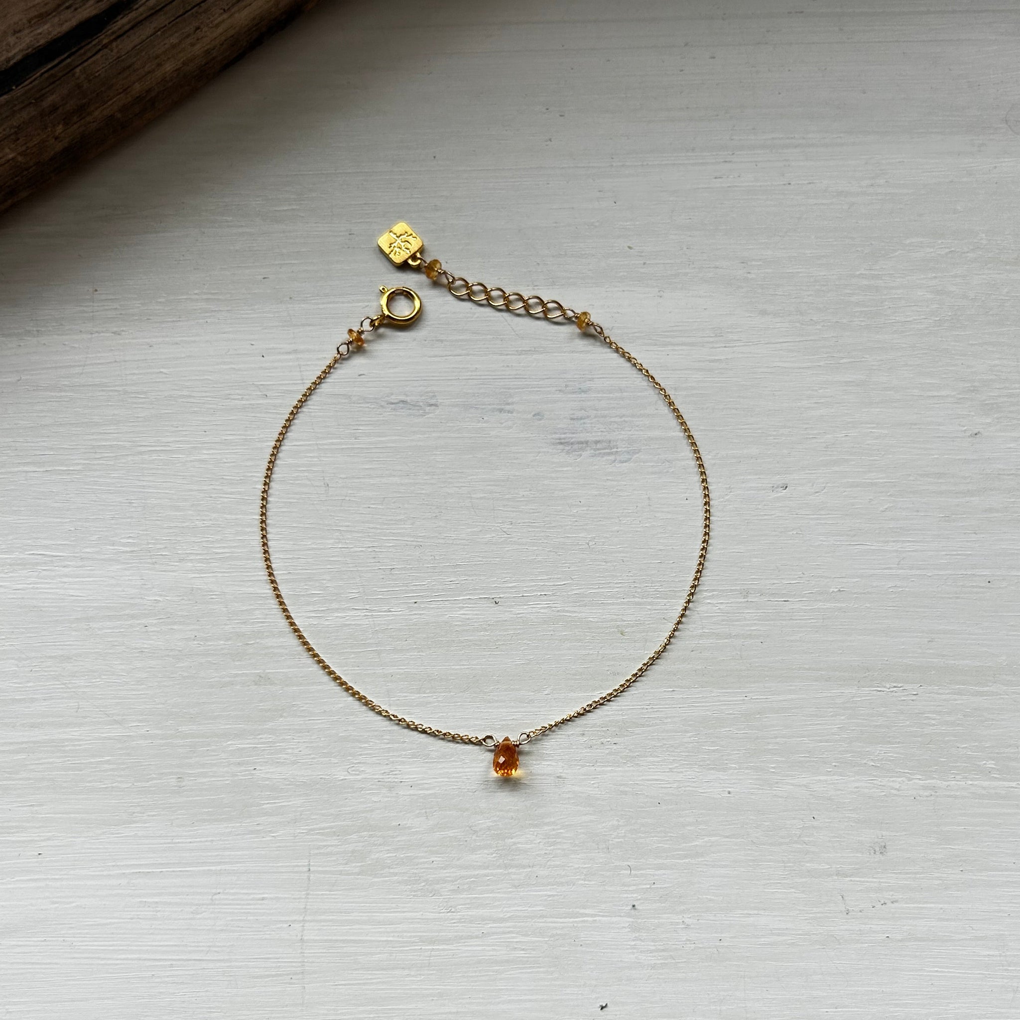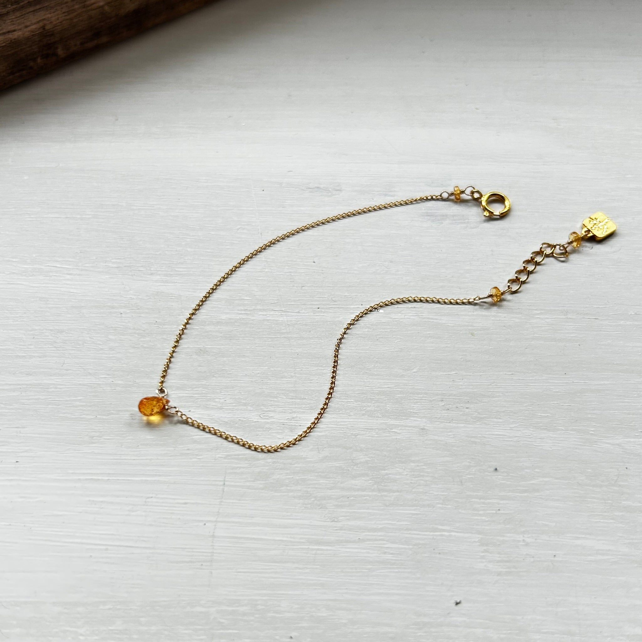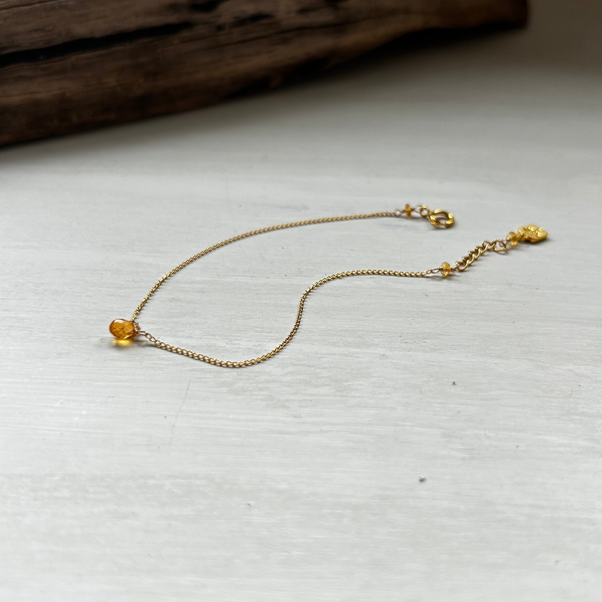 小ぶりなブリオレットカットのスぺサタイトガーネットがお手元でキラキラと輝きます。華奢なブレスレットをお探しの方におすすめです。