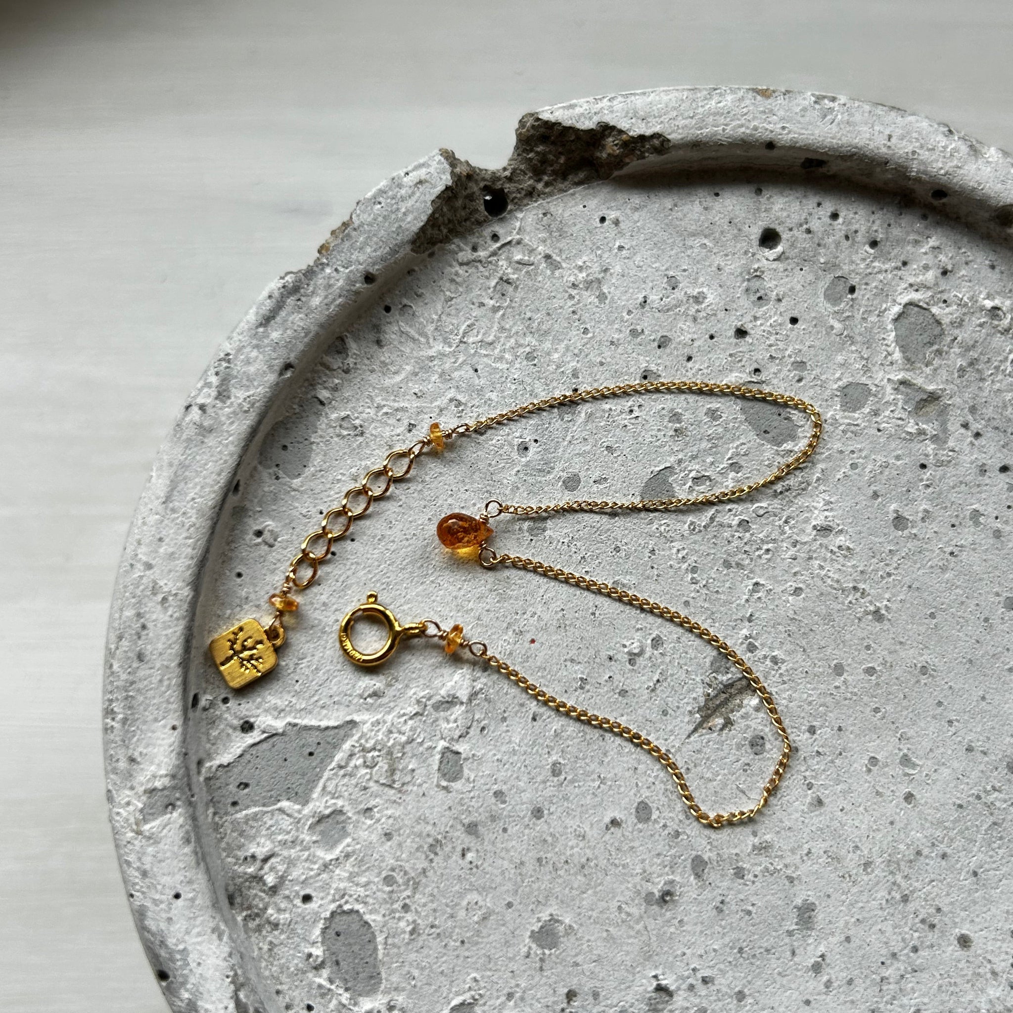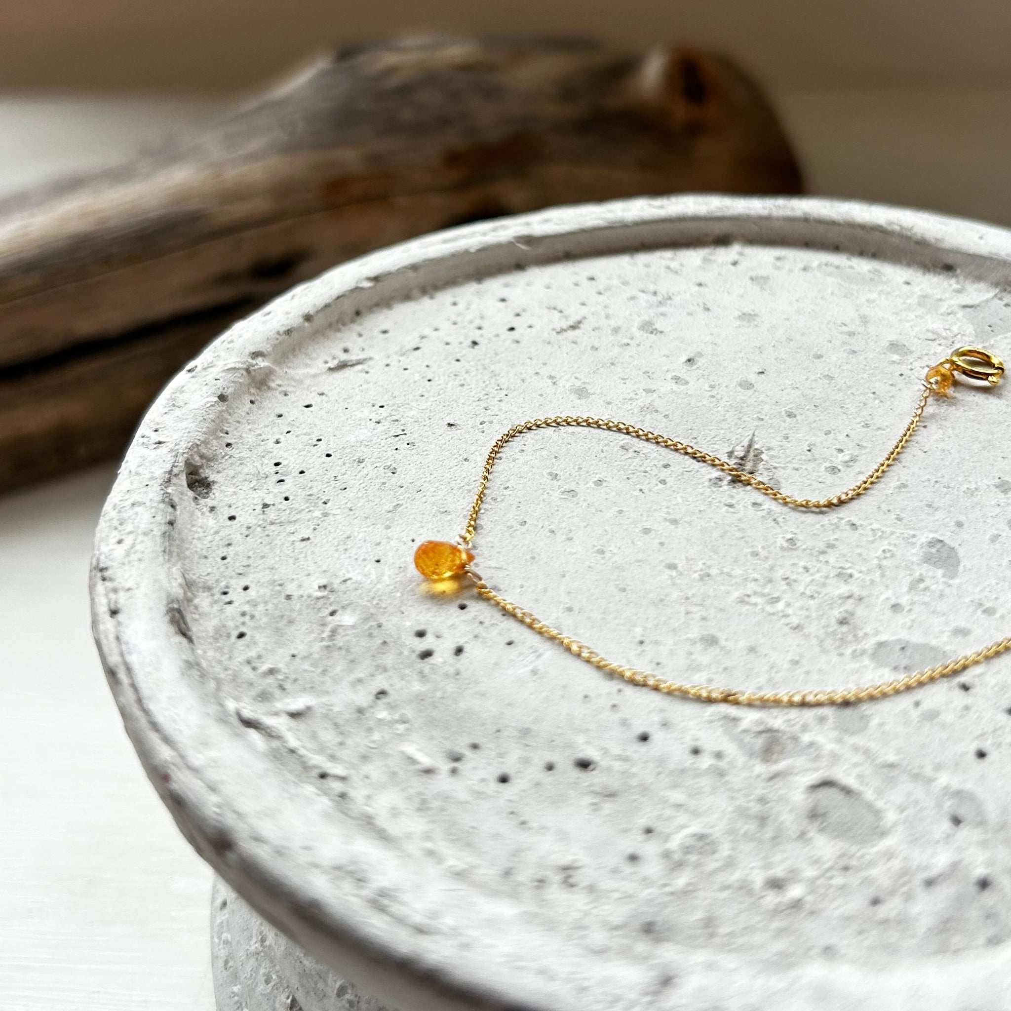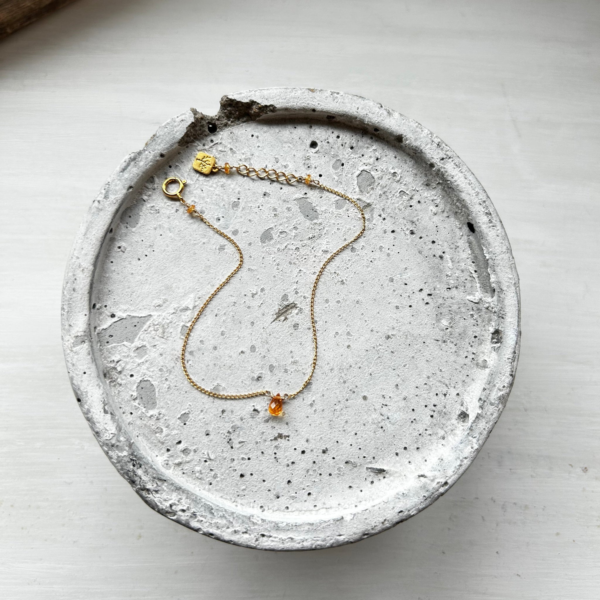 小ぶりなブリオレットカットのスぺサタイトガーネットがお手元でキラキラと輝きます。華奢なブレスレットをお探しの方におすすめです。