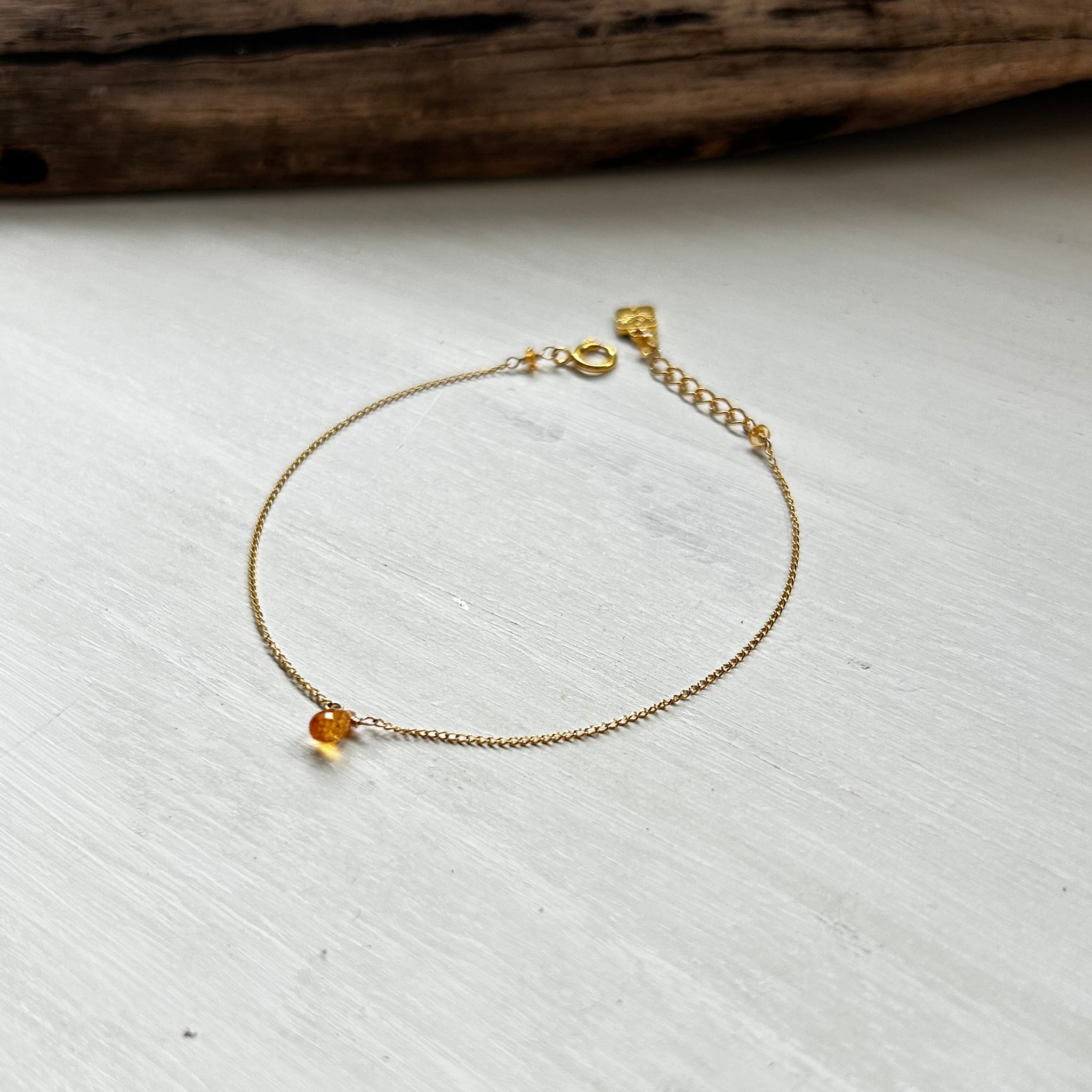 こちらのブレスレットには、明るいオレンジ色が特徴のスぺサタイトガーネットを選びました。