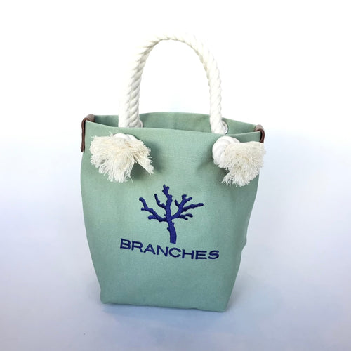 BRANCHES オリジナル トートバッグ *珊瑚刺繍入り*スモーキーセラドン(青刺繍、白紐)