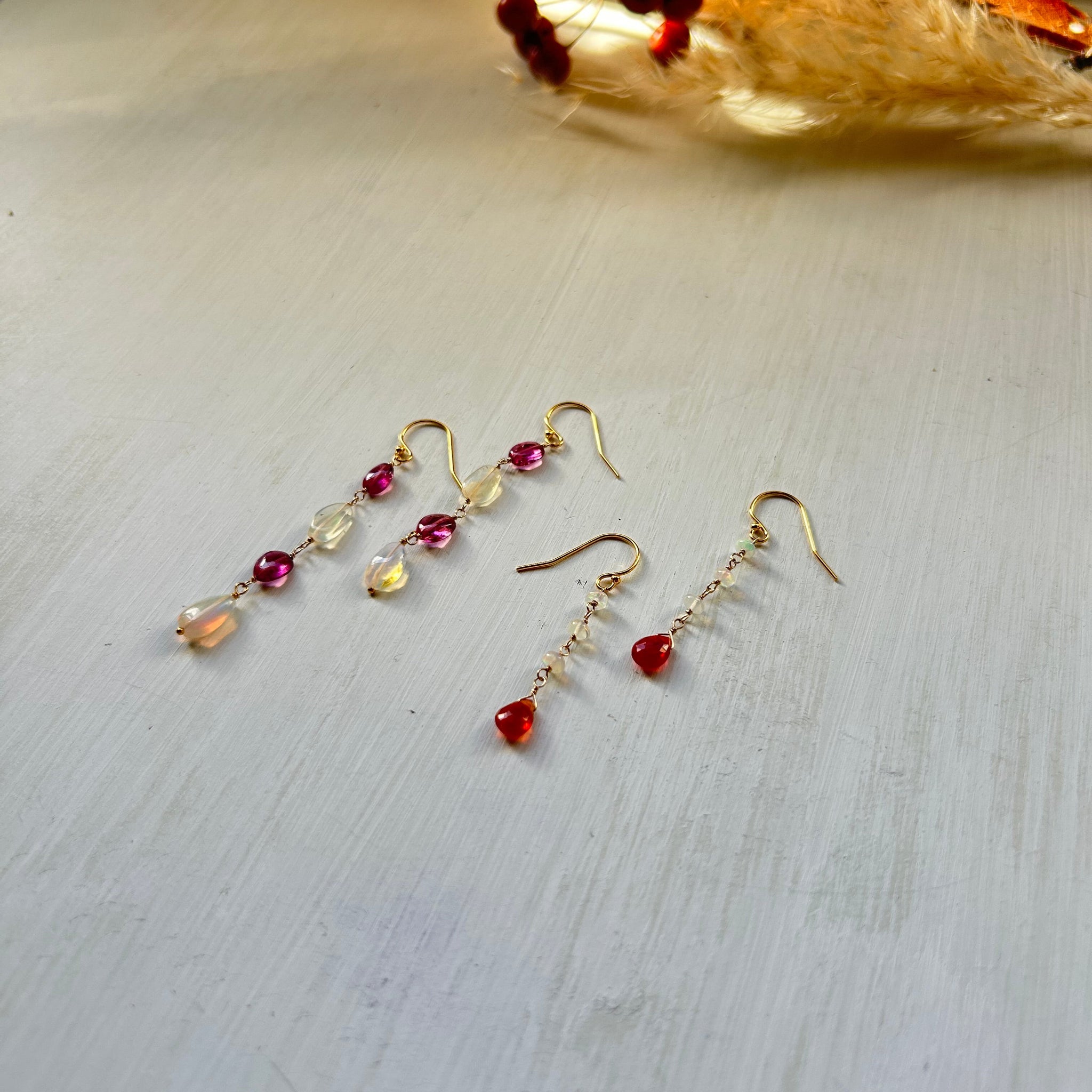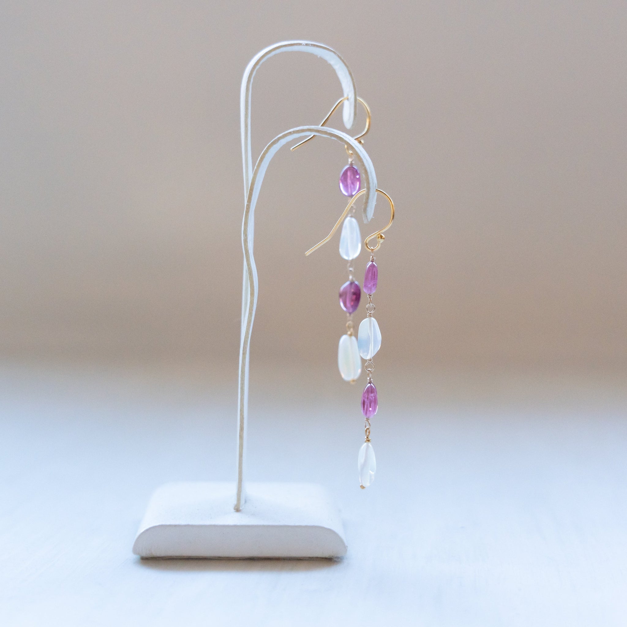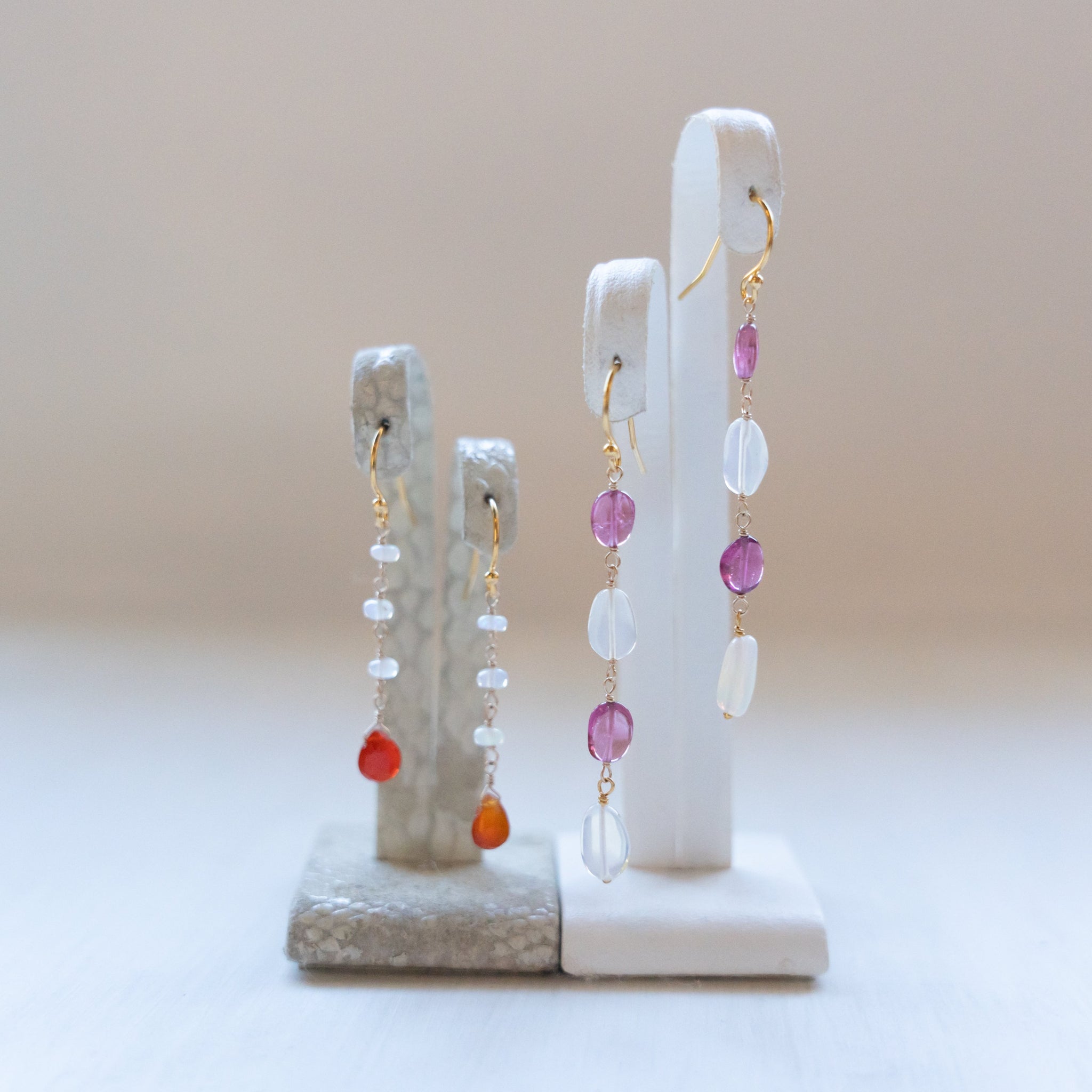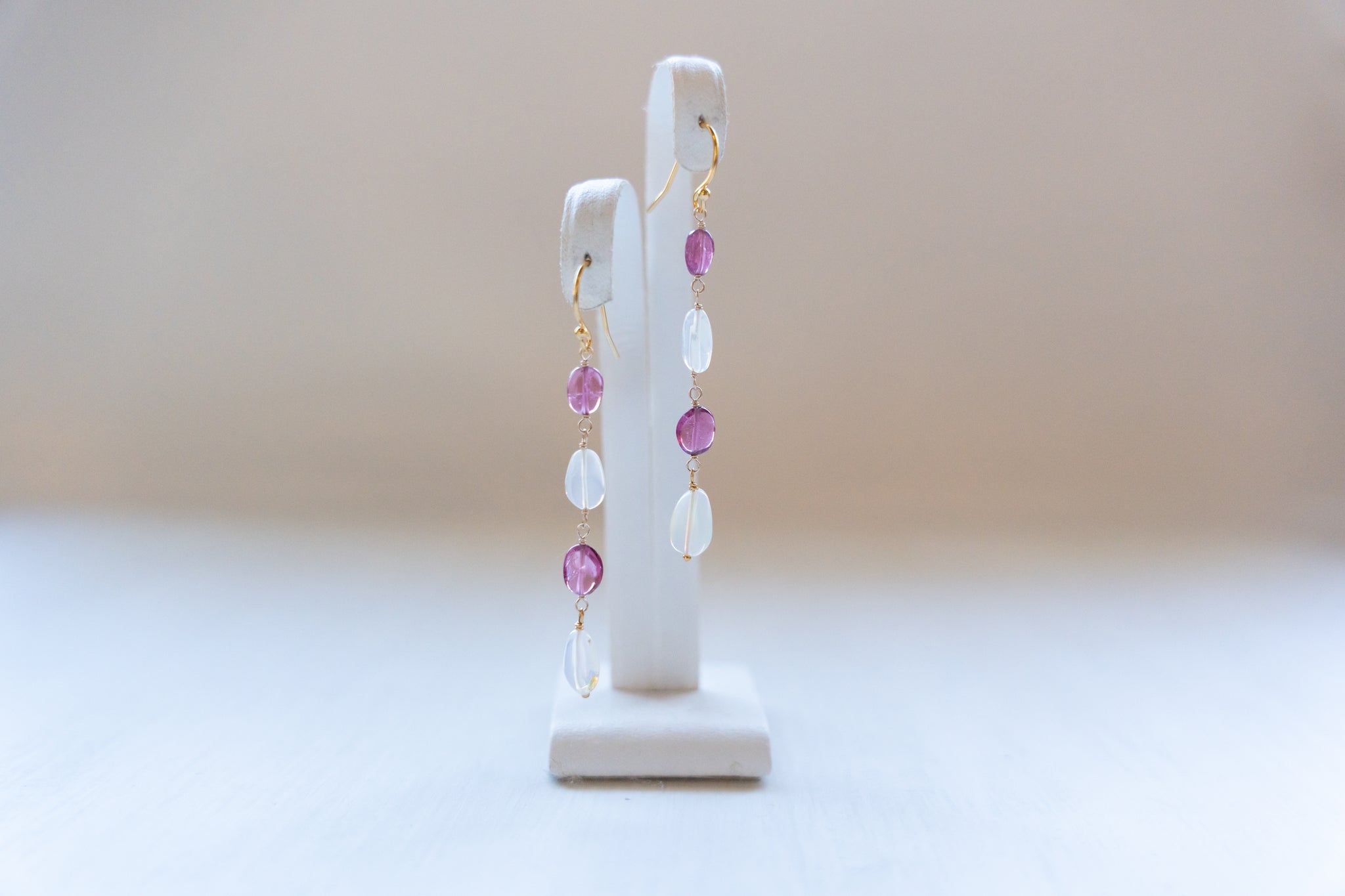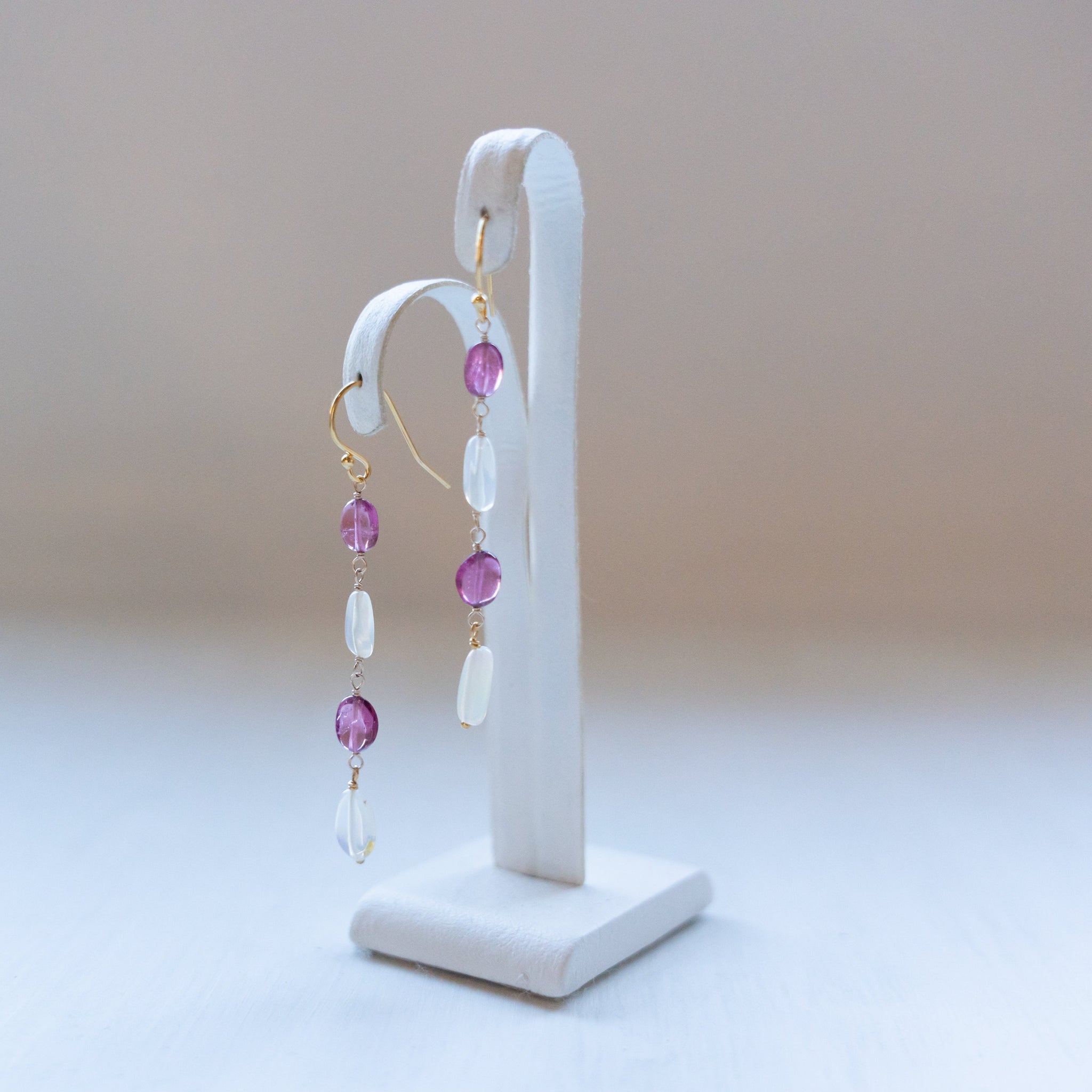 こちらのピアスには10月の誕生石であるピンクの「トルマリン」とホワイトの「オパール」を繋げ、優しい色合いの組み合わせに仕上げました。