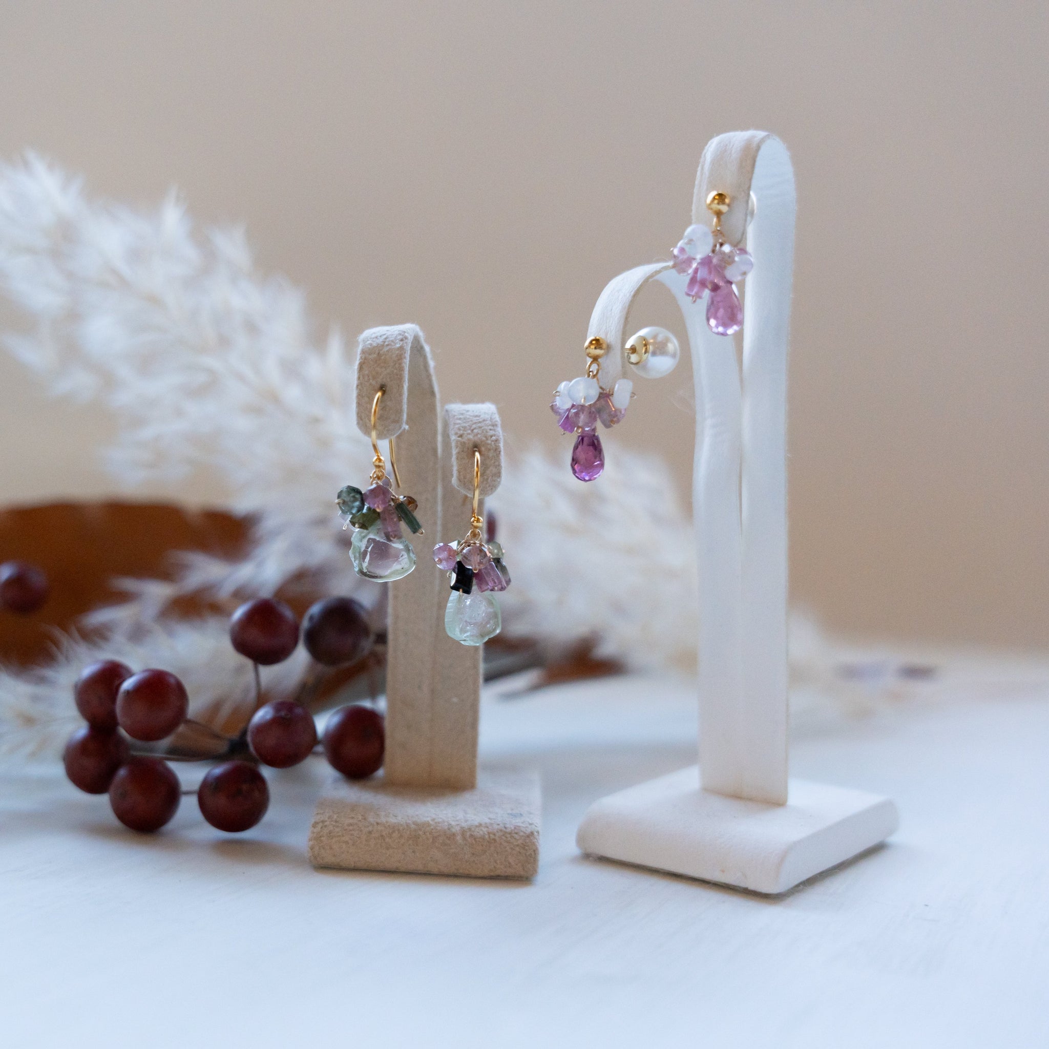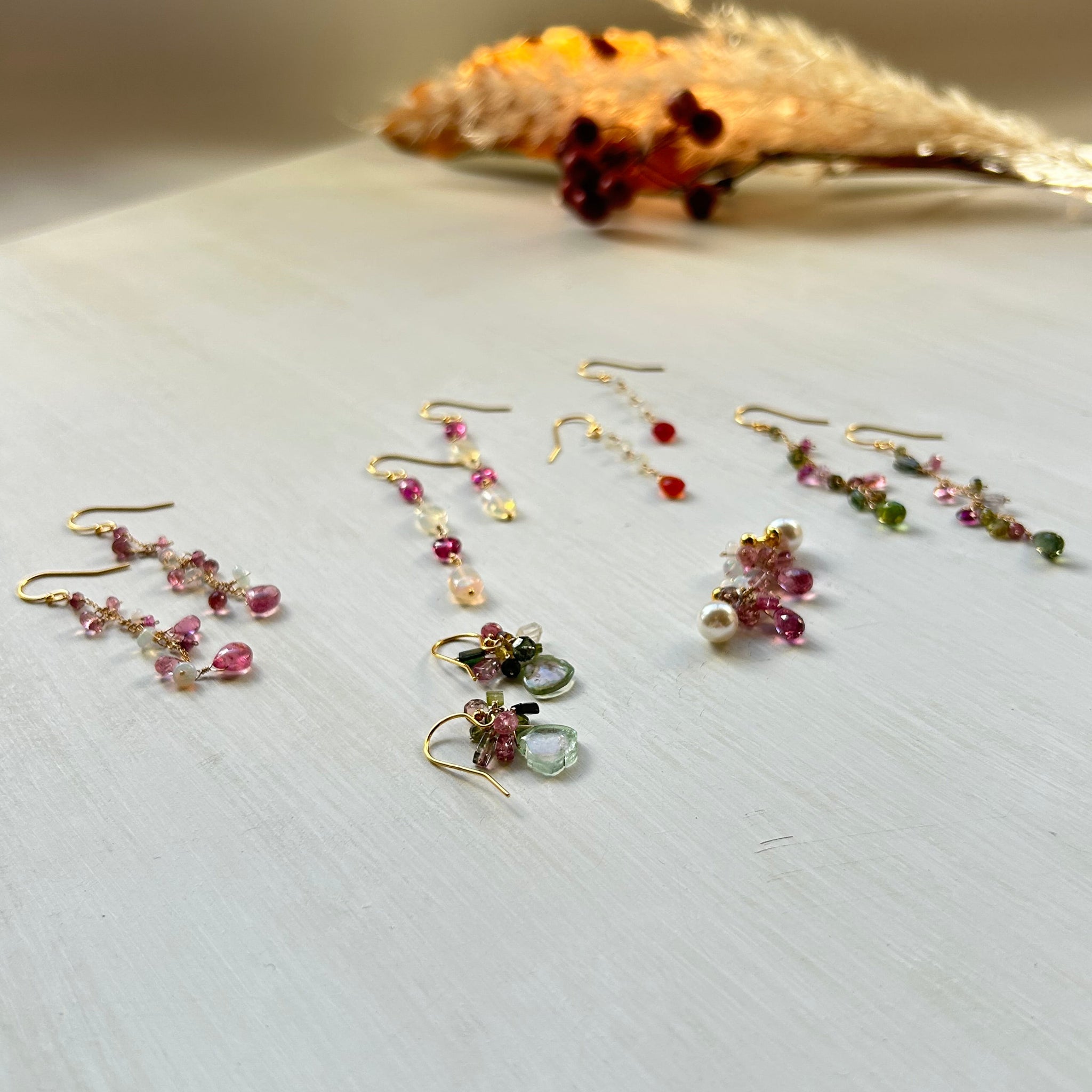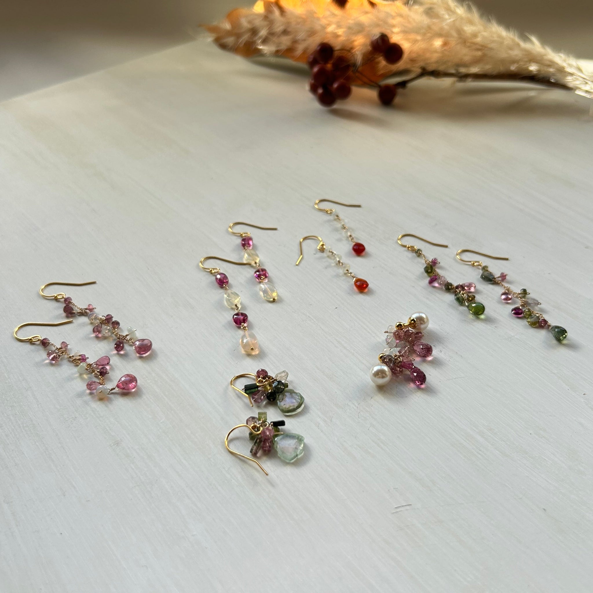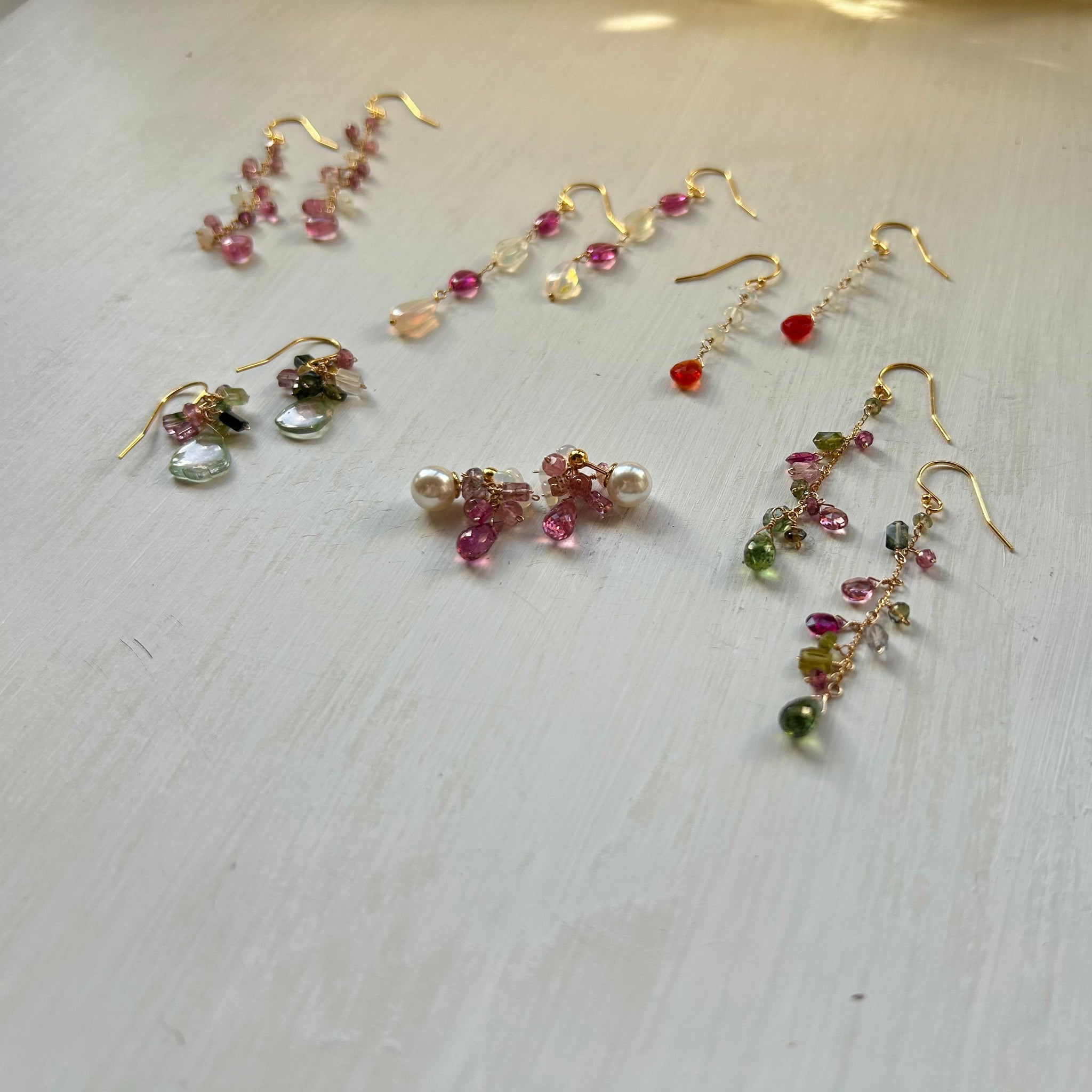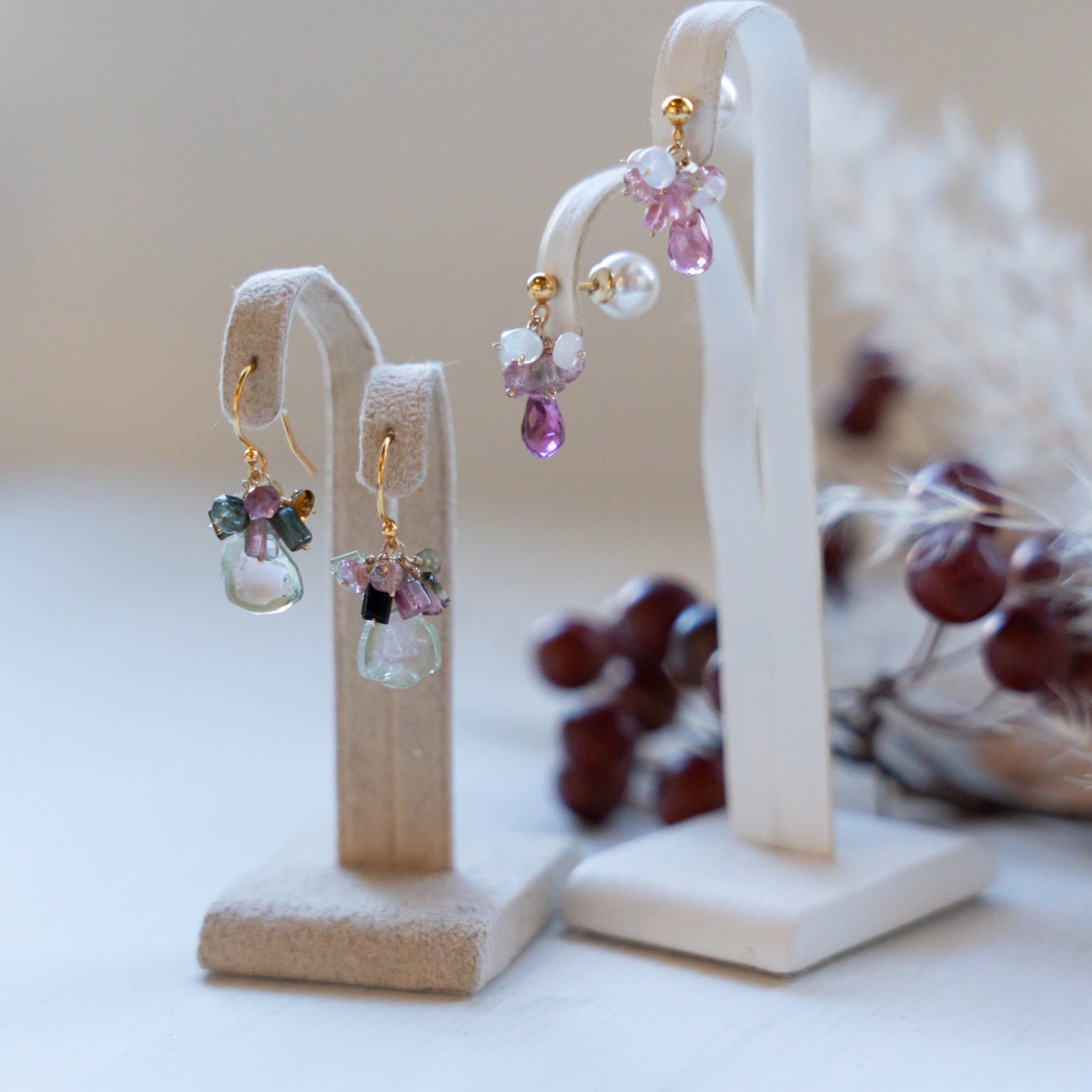 こちらのポストタイプのピアスには、淡いピンク色のトルマリンとオパールを組み合わせ、優しい色合いに仕上げました。