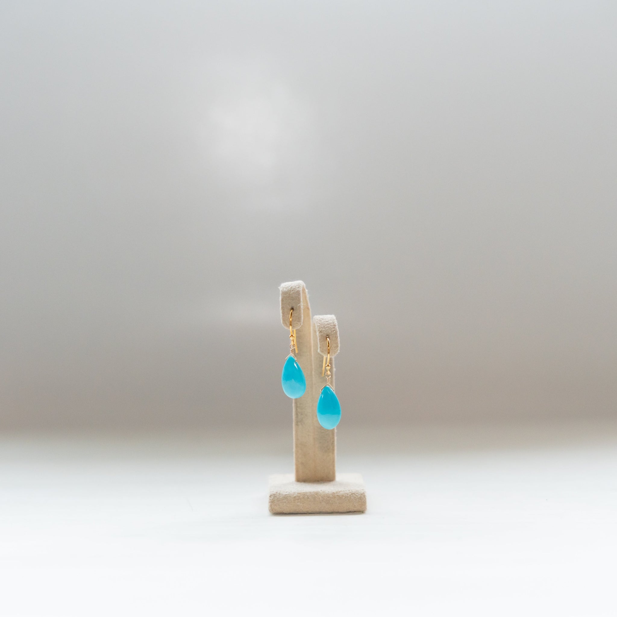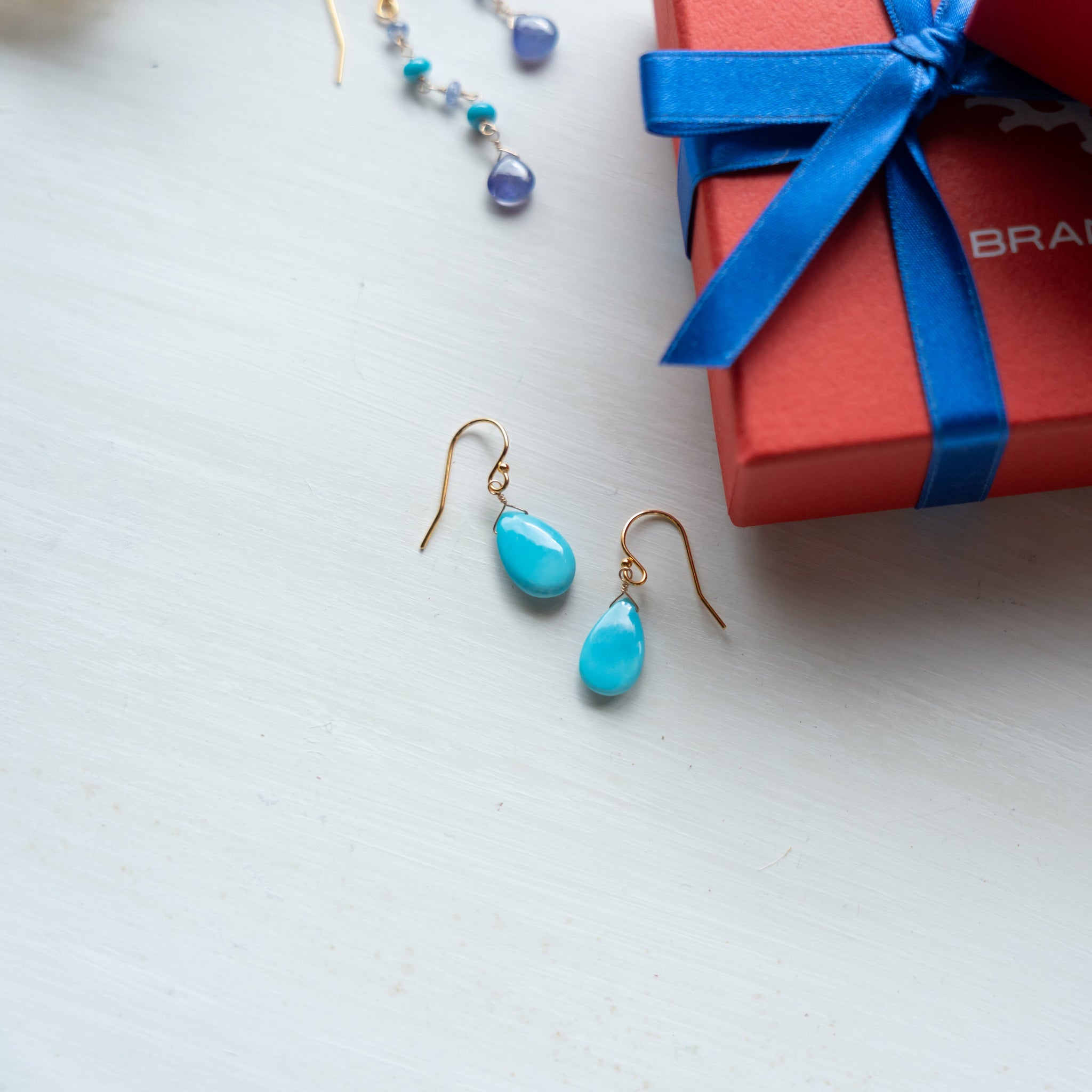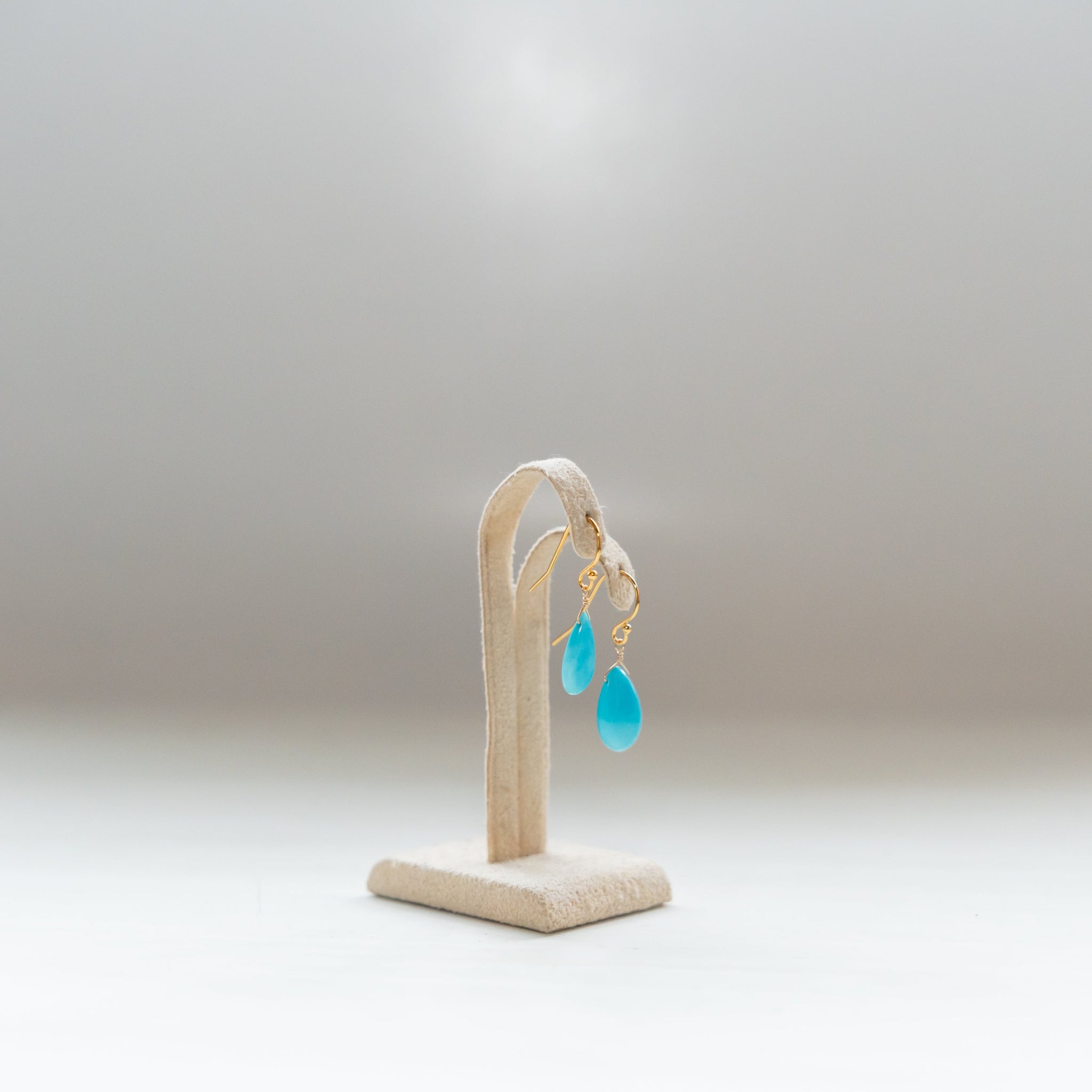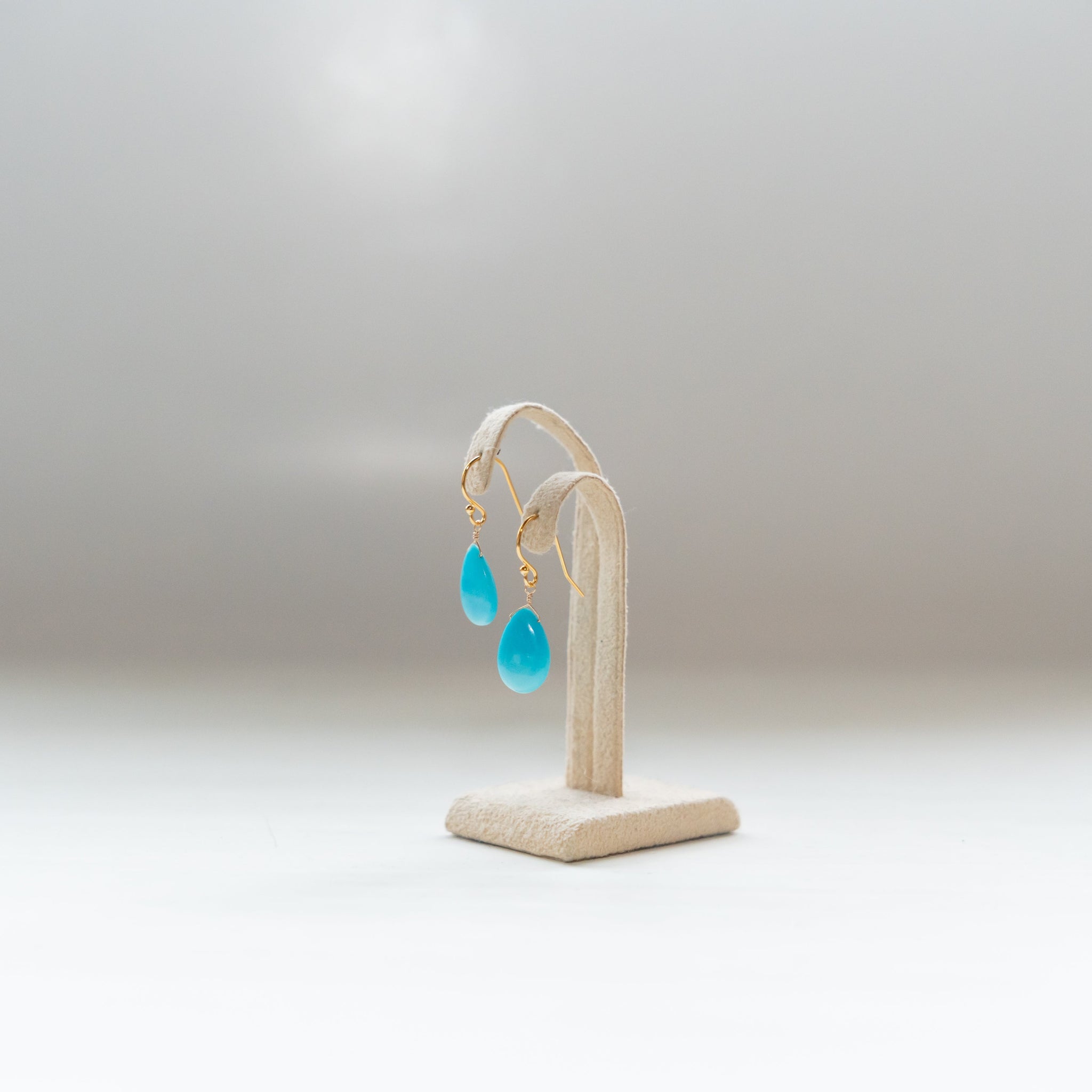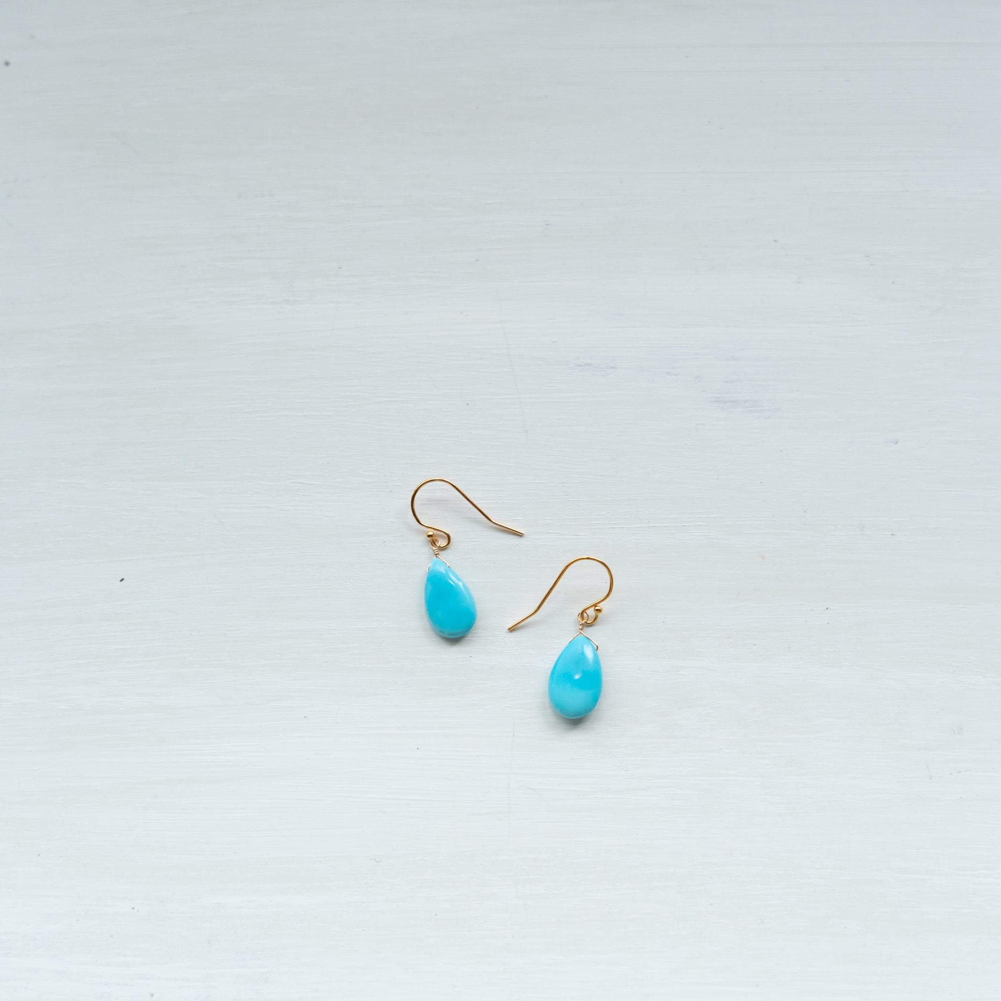 つるんとしたペアシェイプのターコイズが目を引く、シンプルながらも存在感のあるアクセサリーです。