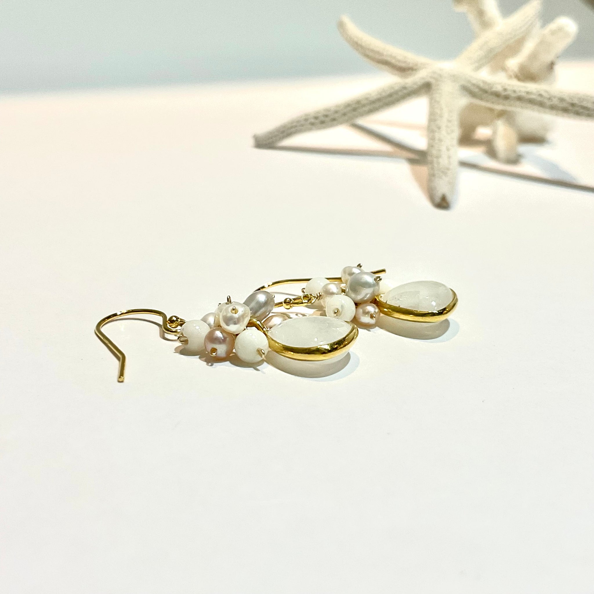①ムーンストーン ー 白珊瑚、淡水パール