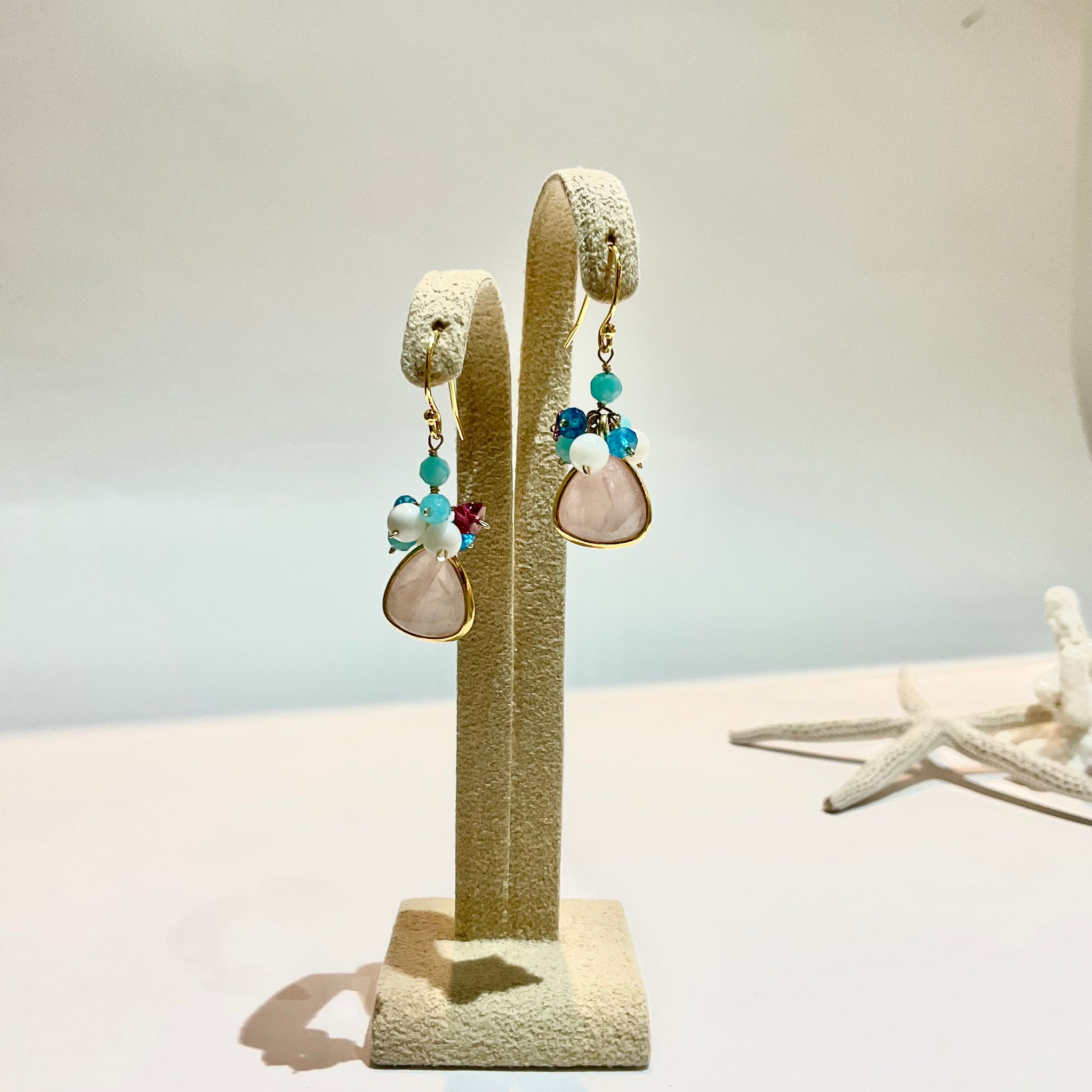 ③ローズクォーツ ー 白珊瑚、アパタイト、アマゾナイト、マルチスピネル