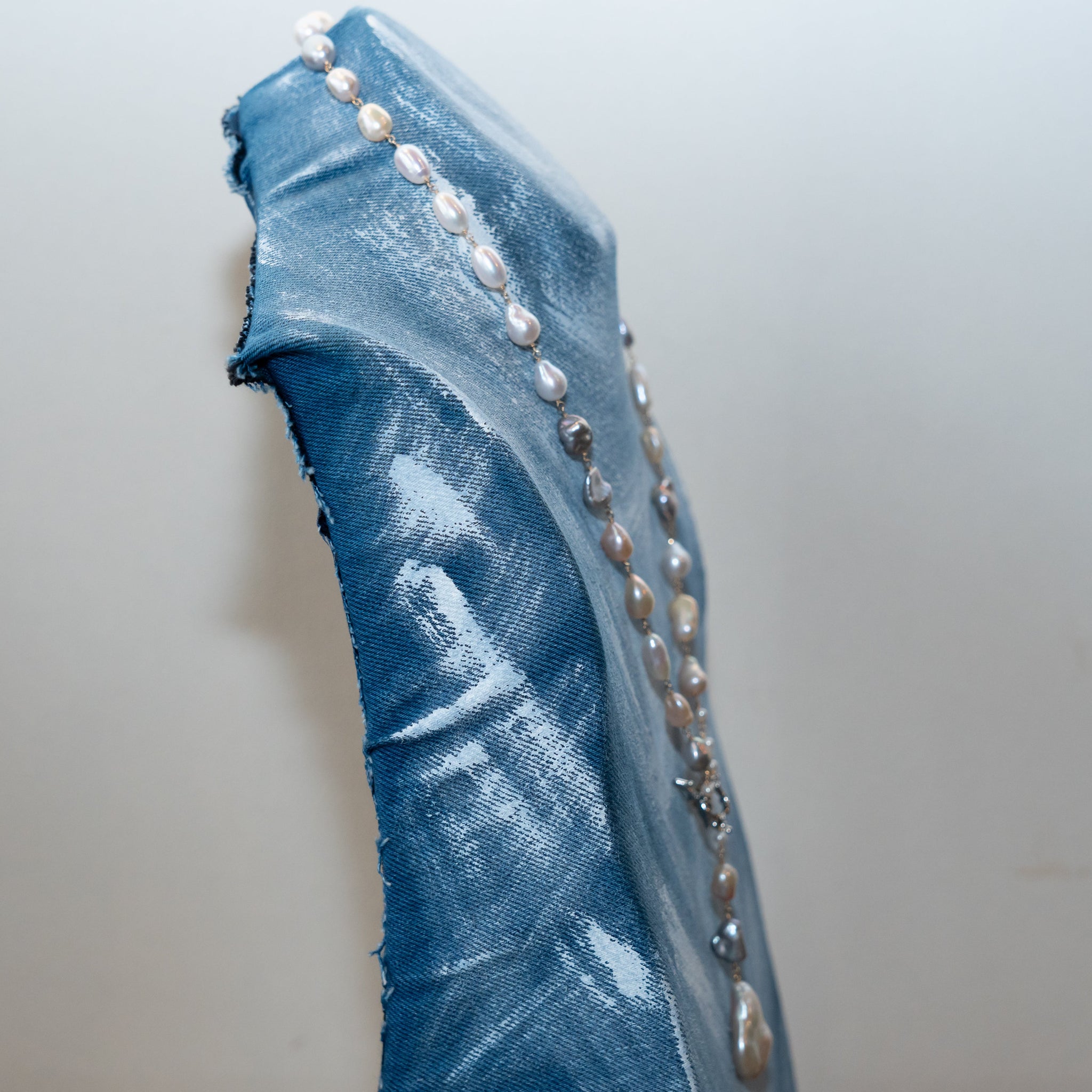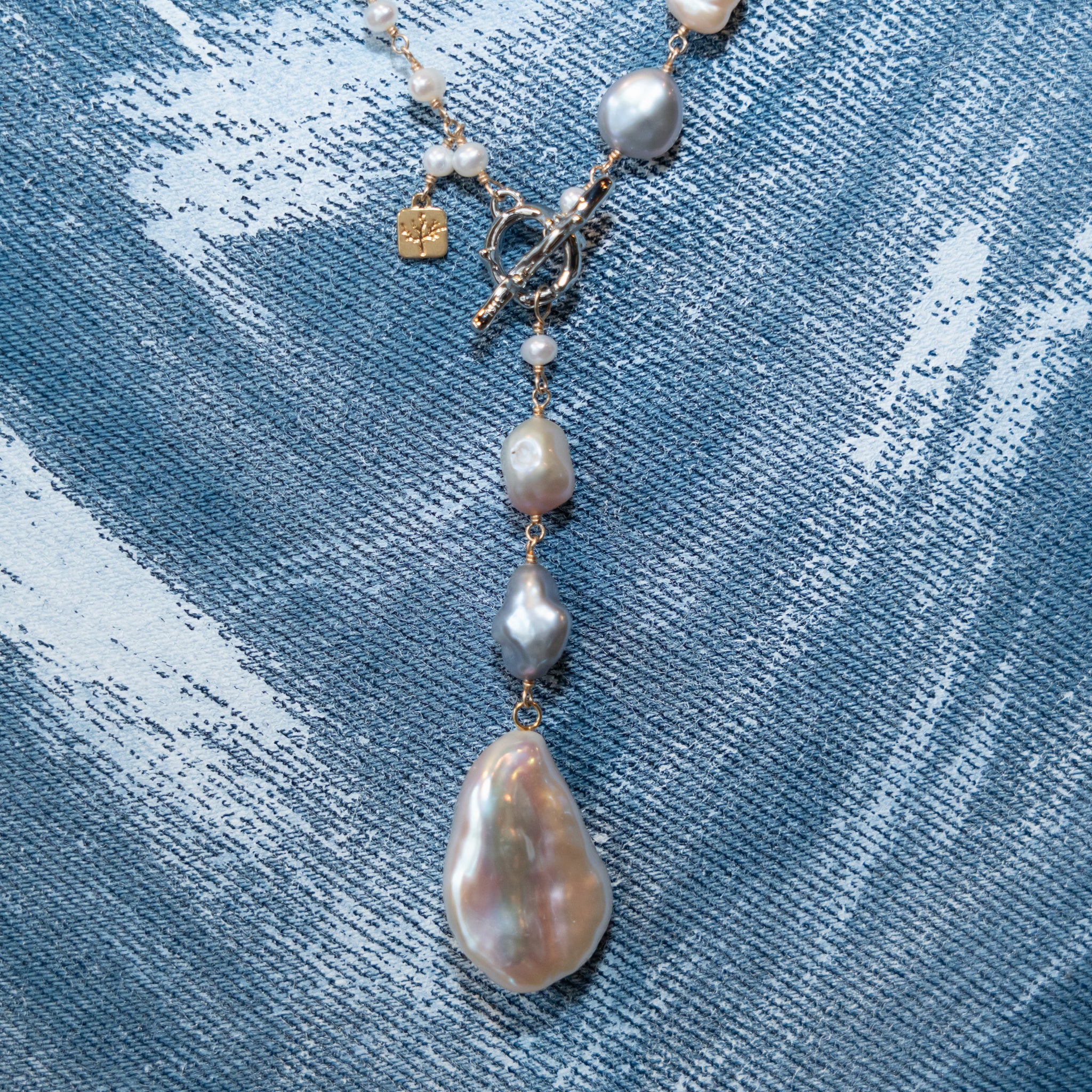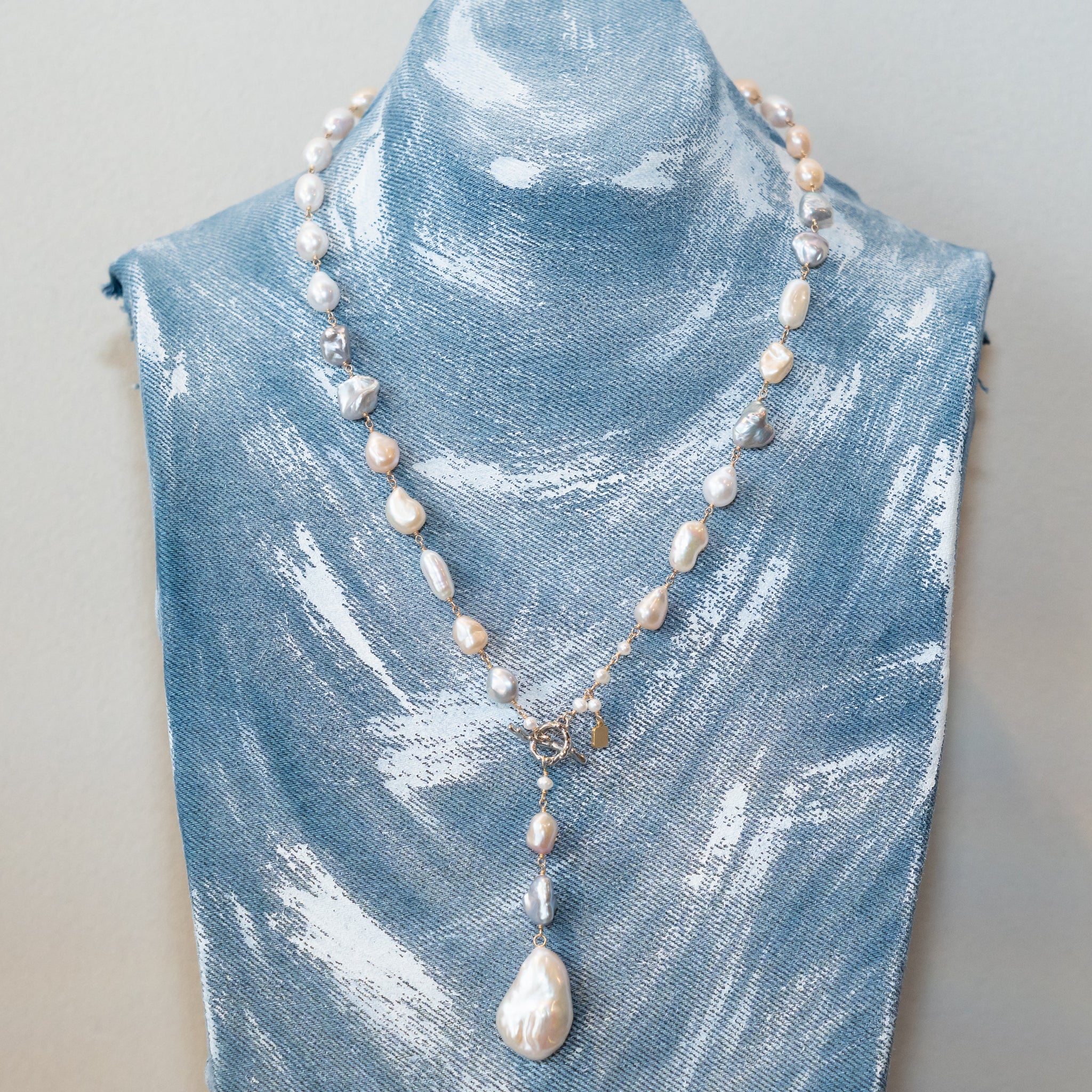 一つひとつの形やカラーが異なる淡水パールをランダムに組み合わせた