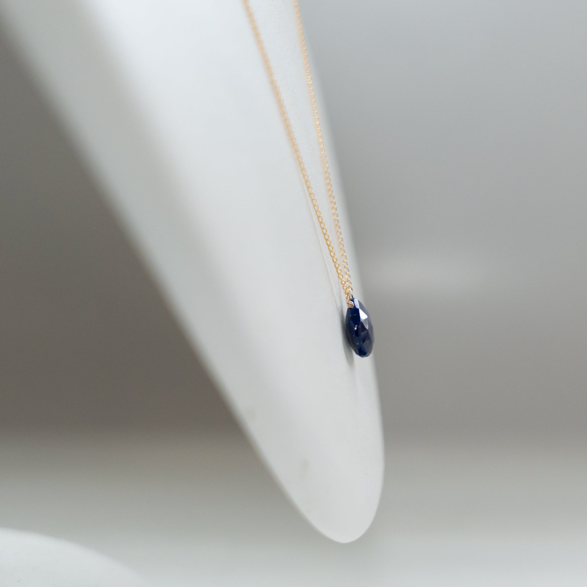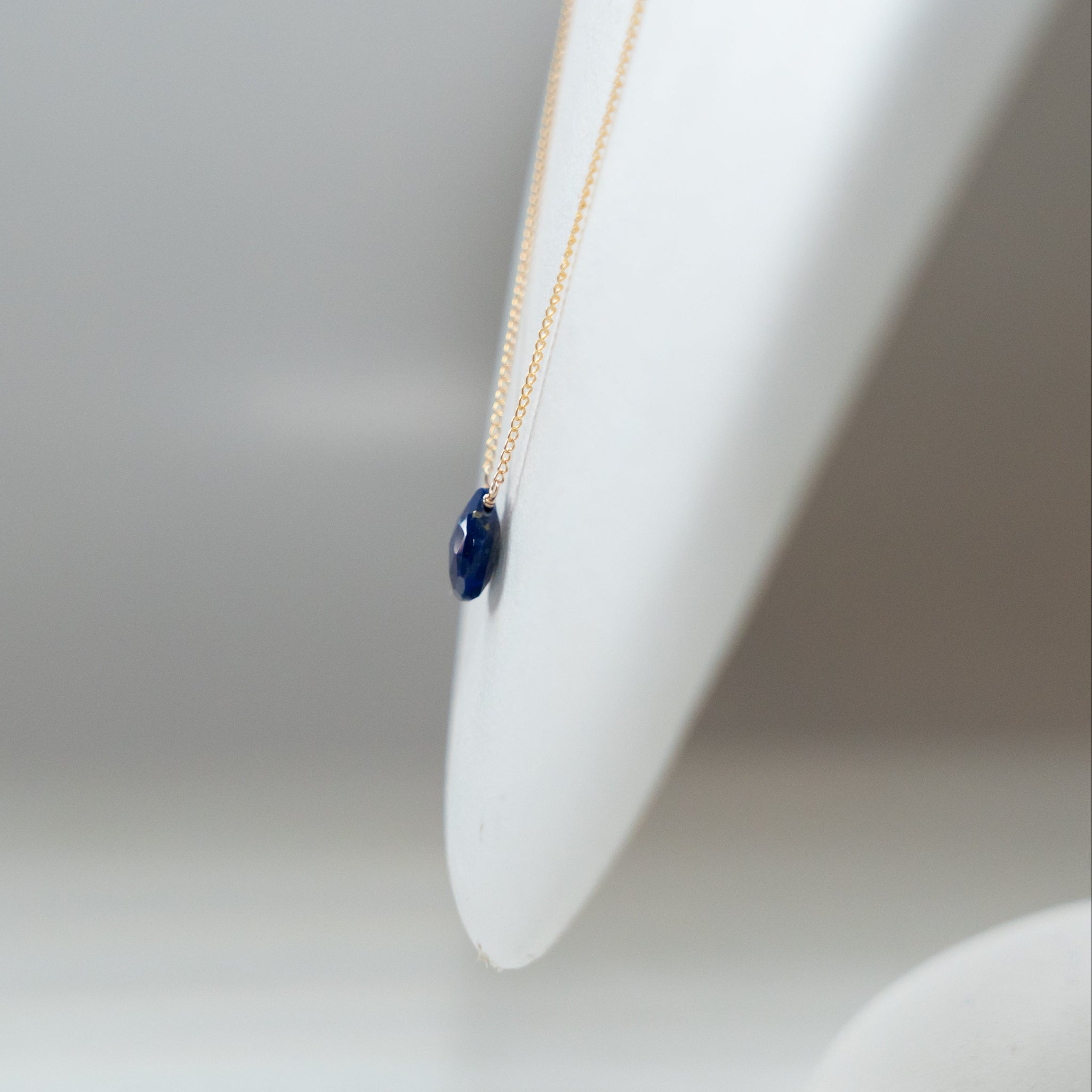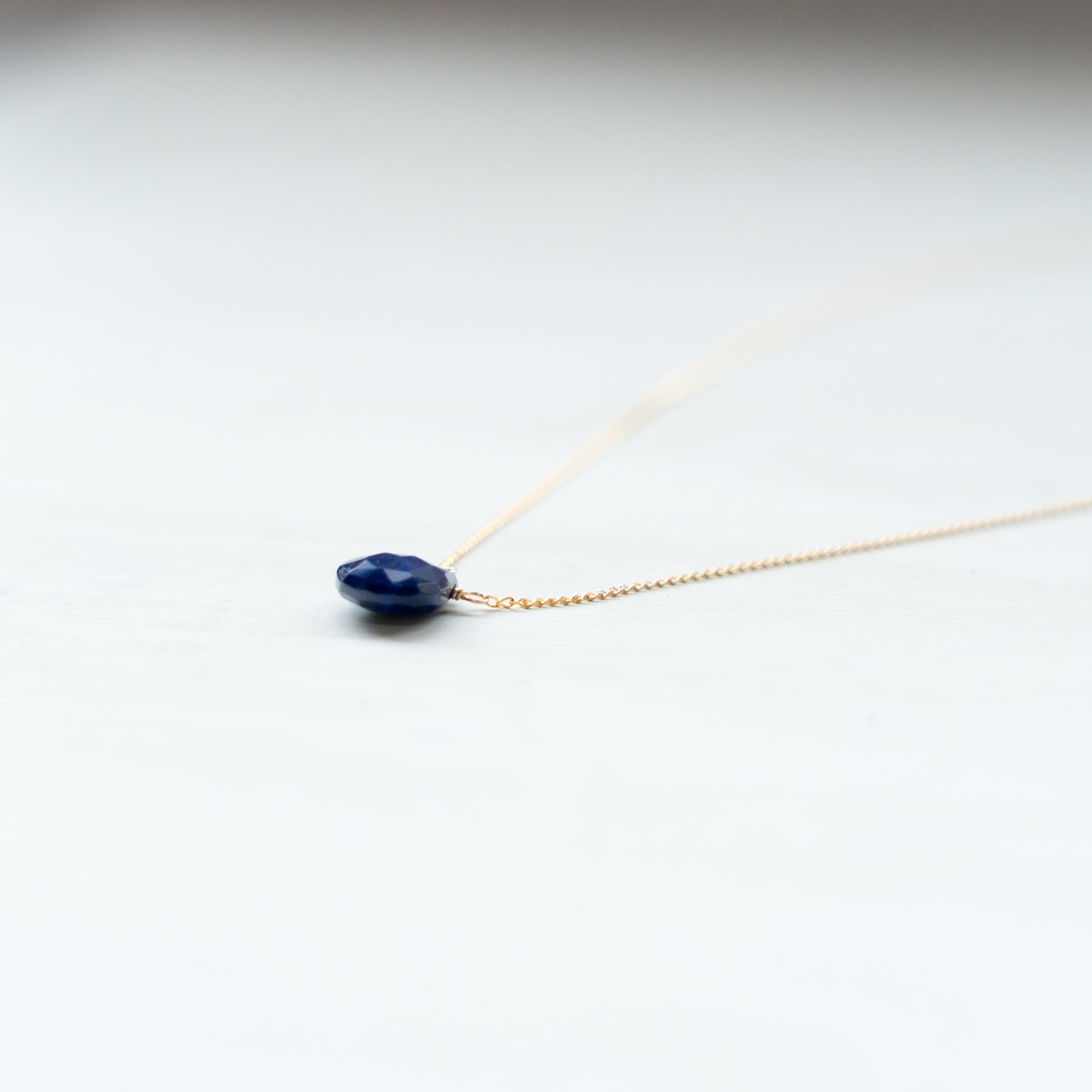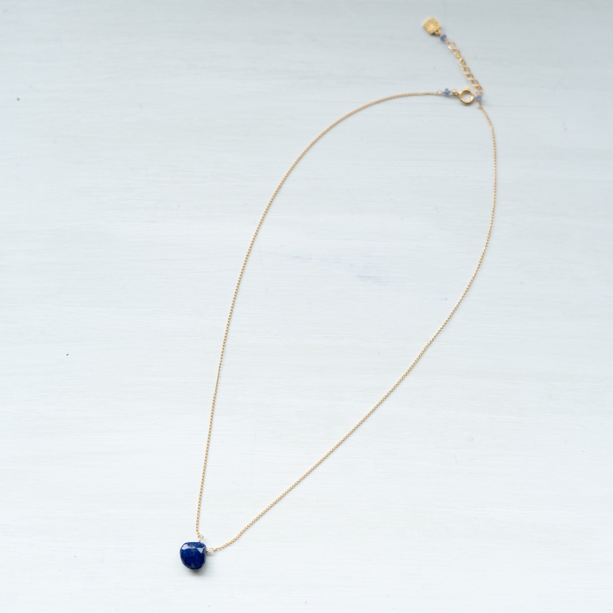 そのラピスラズリの魅力を活かしたシンプルなネックレス。濃いブルーのラピスラズリが胸元で、いっそう存在感を放ちます。