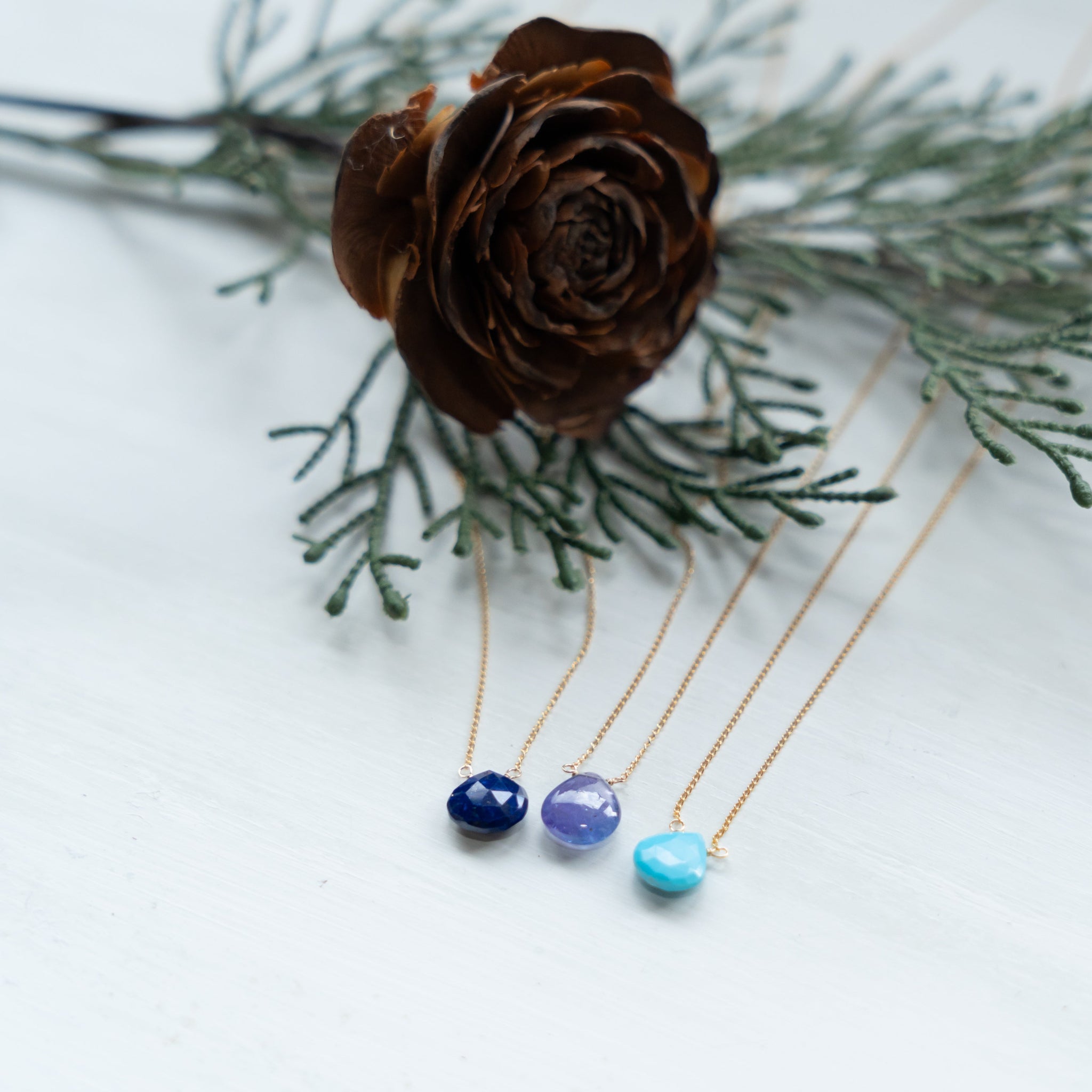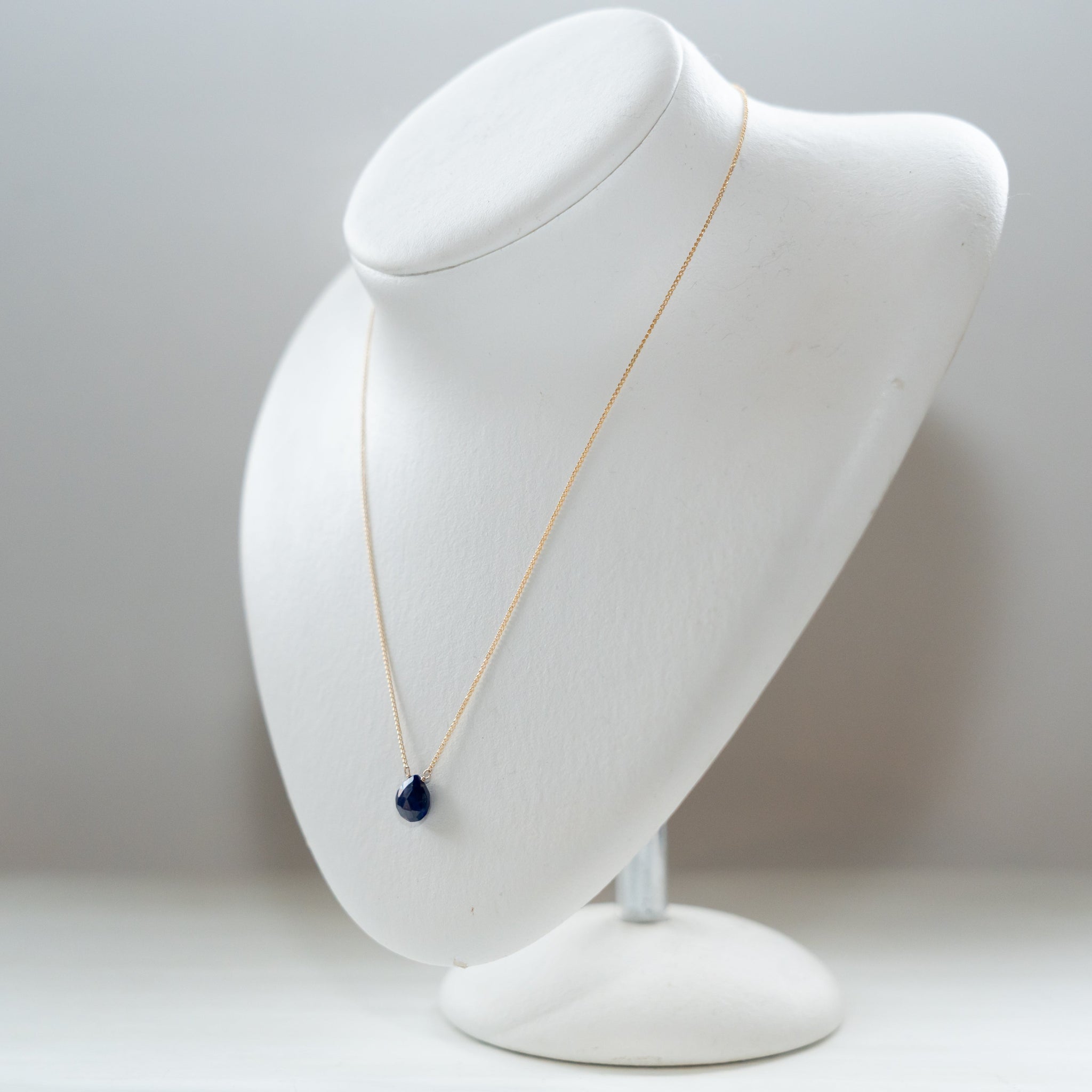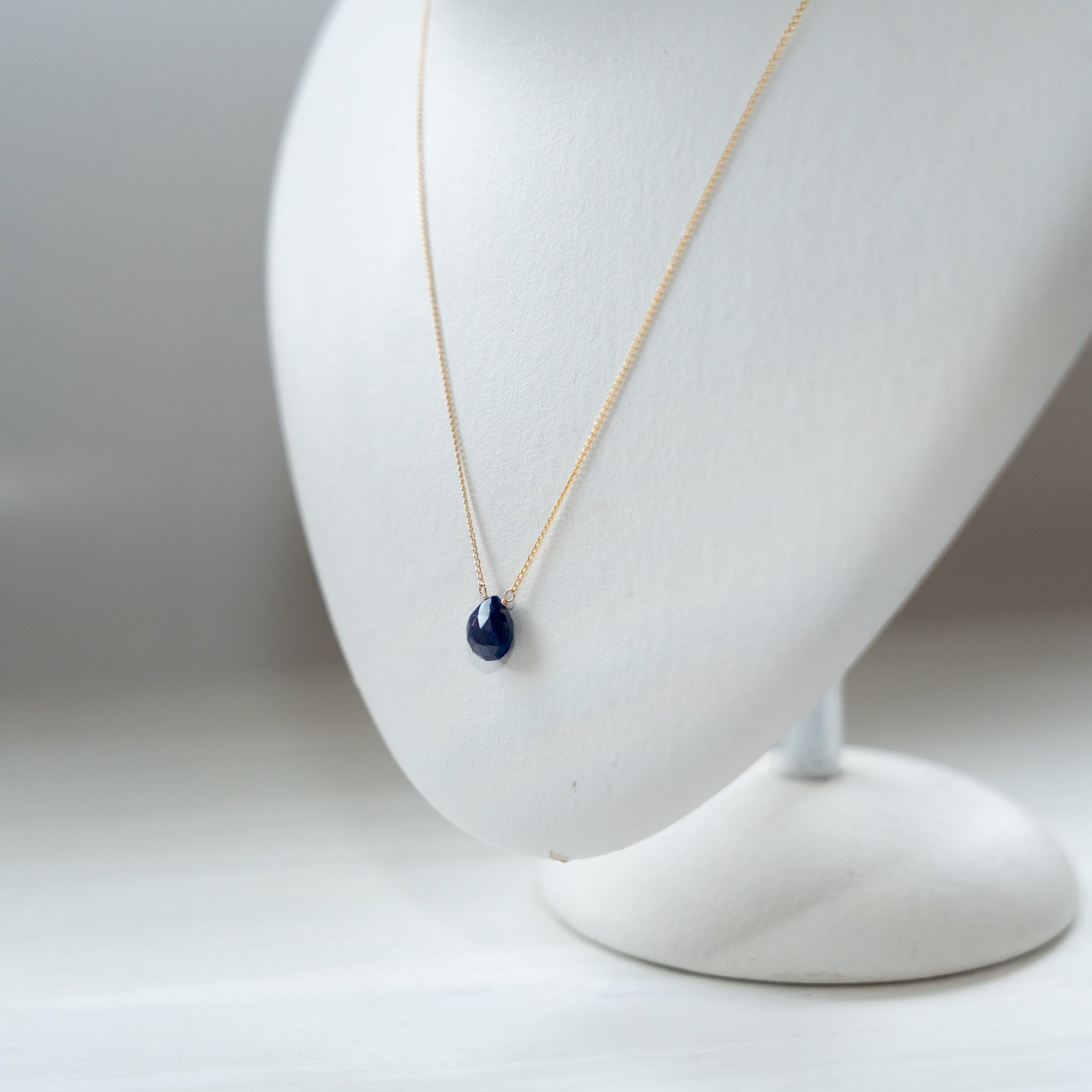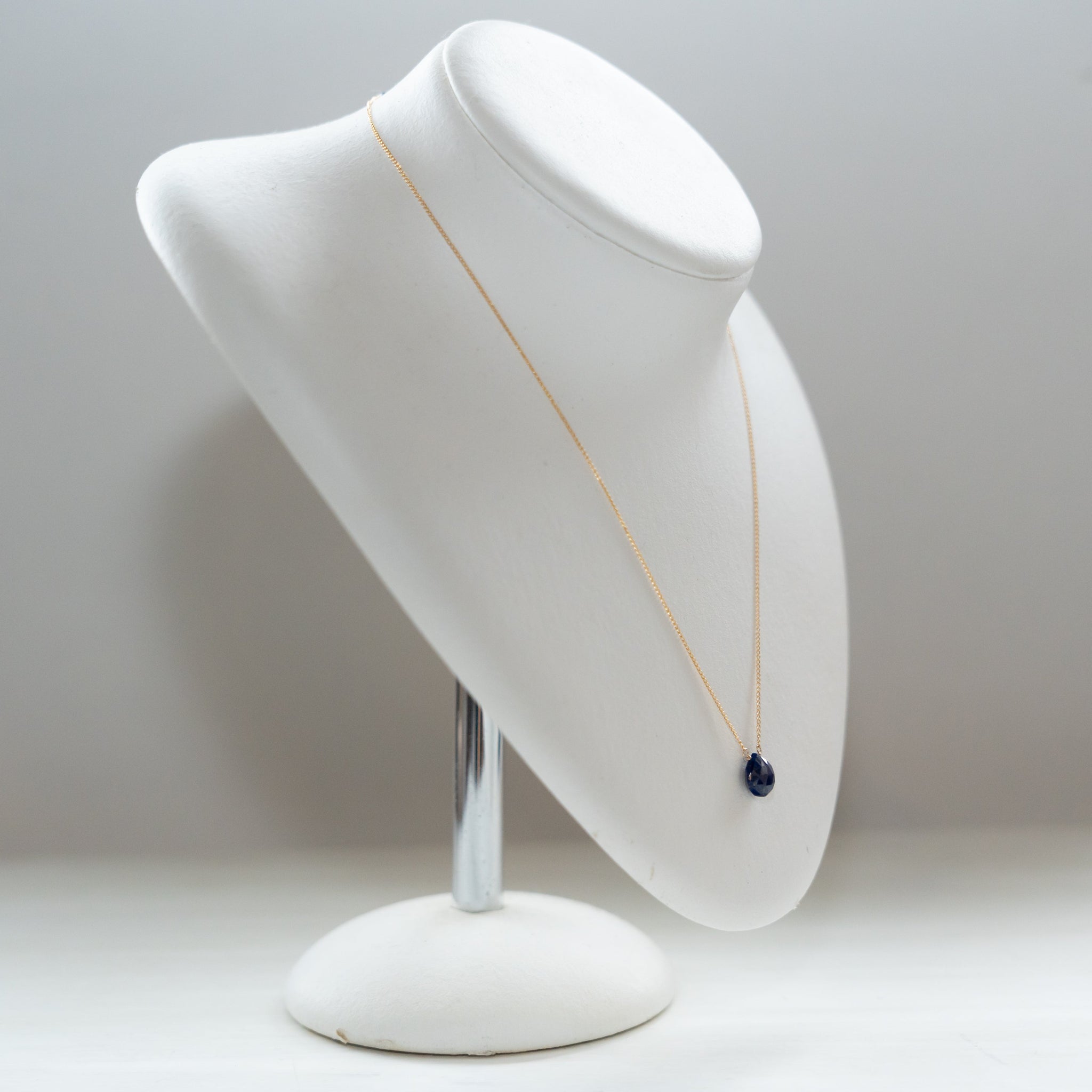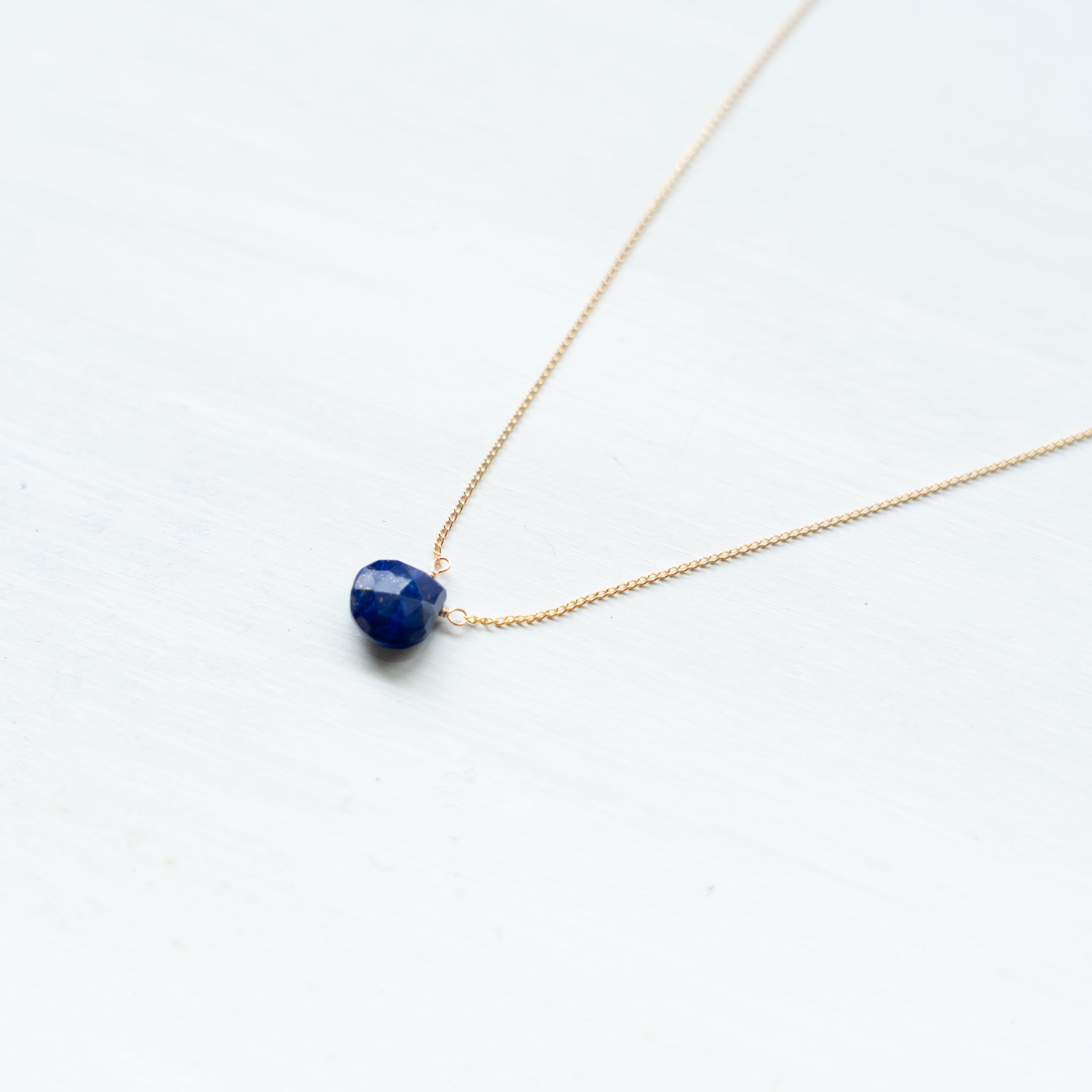 そのラピスラズリの魅力を活かしたシンプルなネックレス。濃いブルーのラピスラズリが胸元で、いっそう存在感を放ちます。