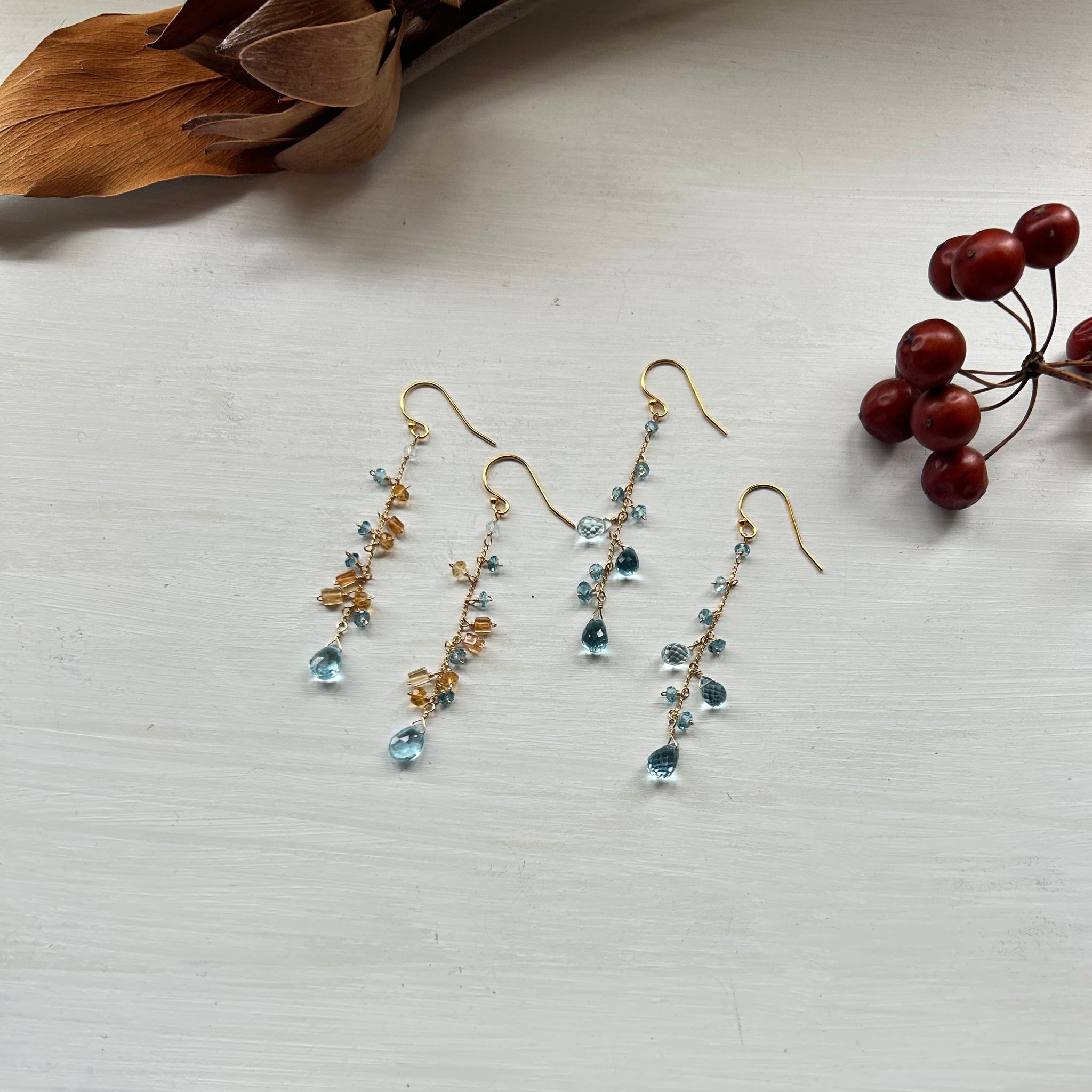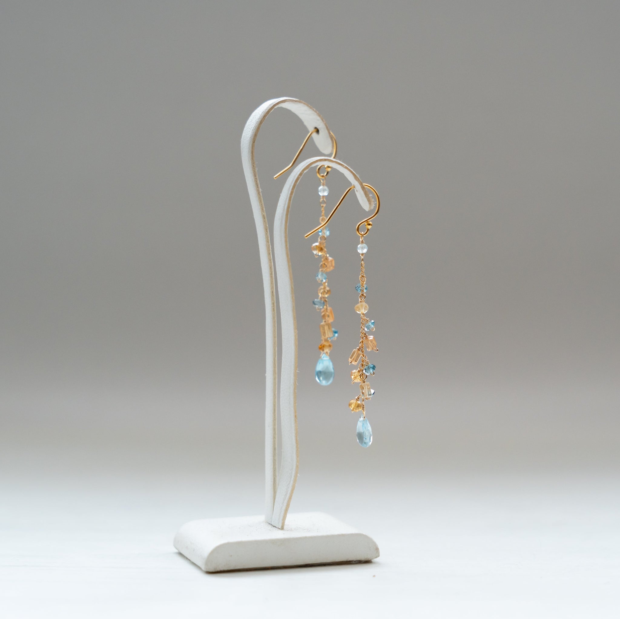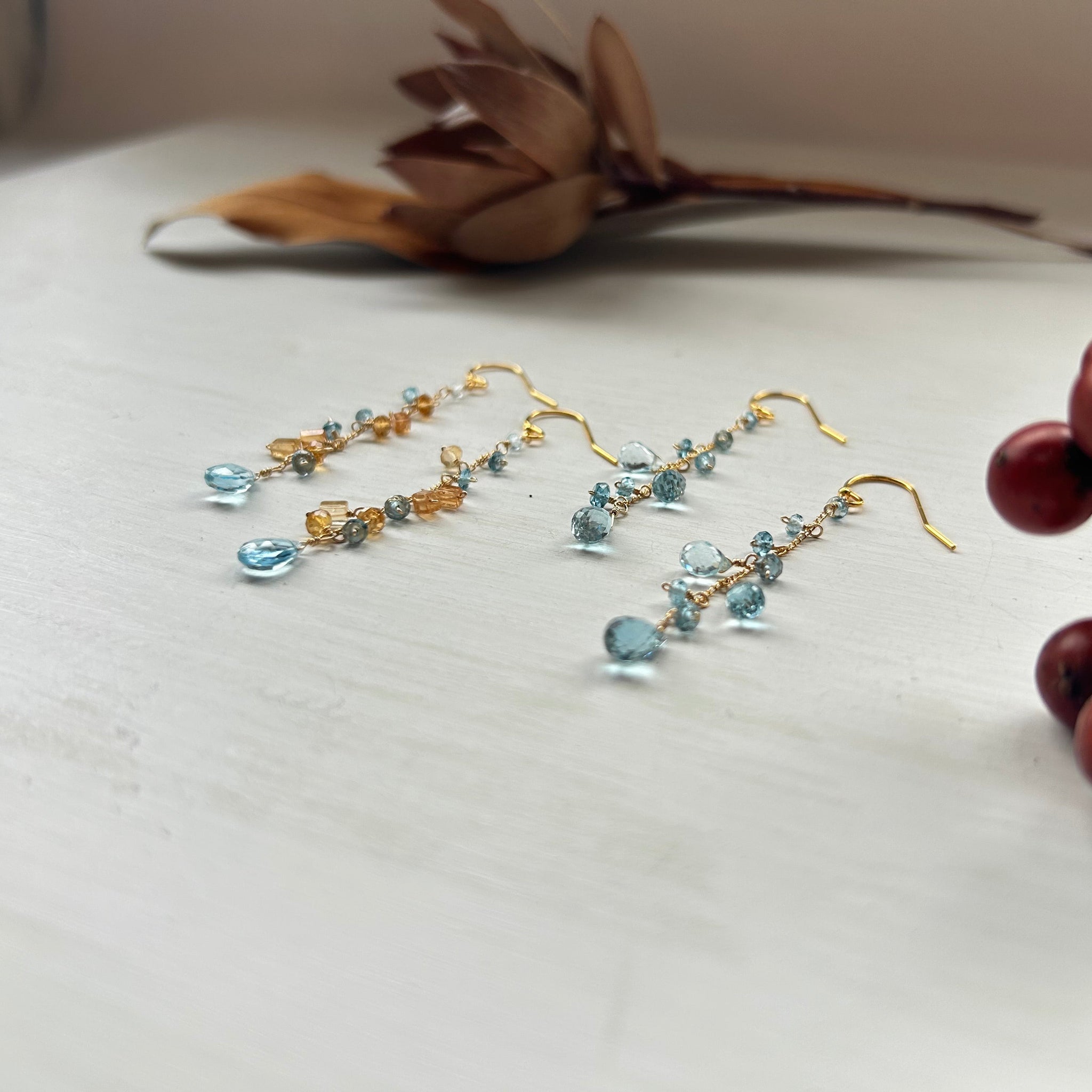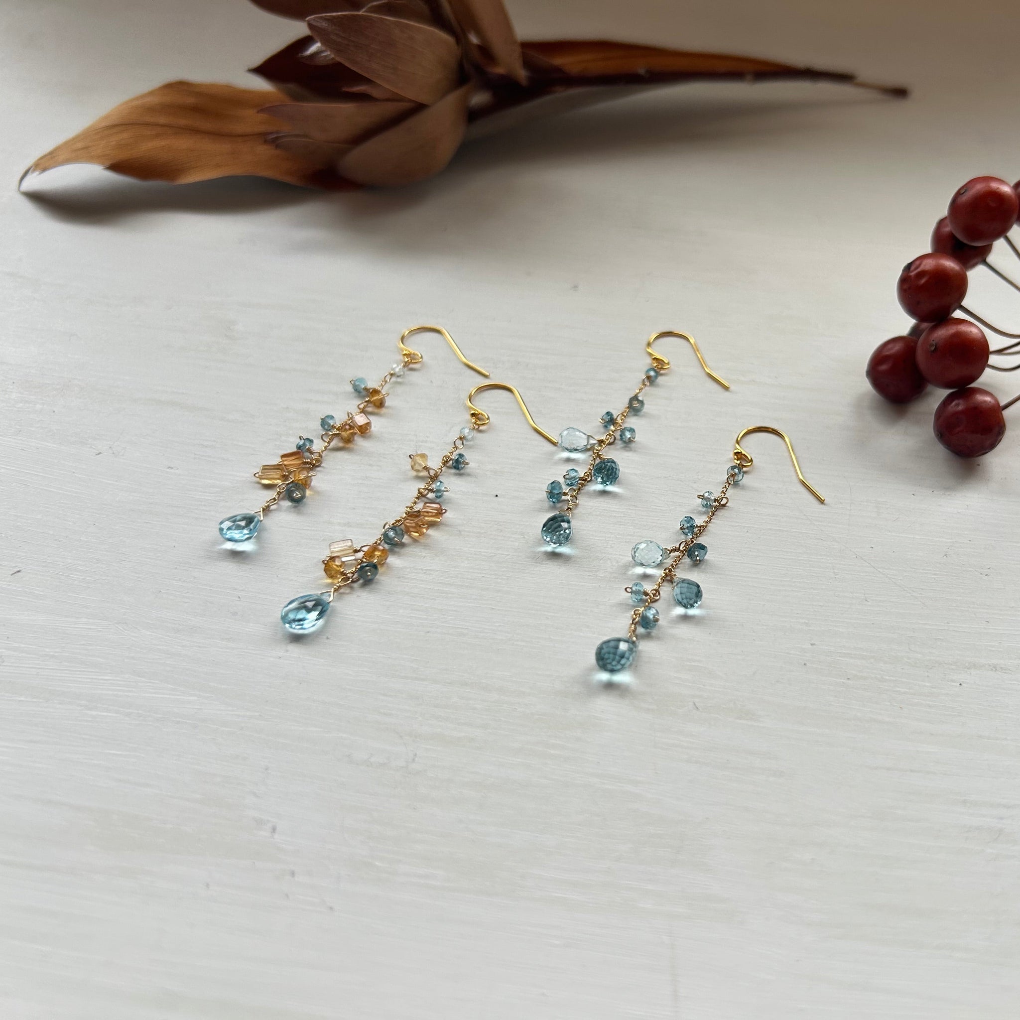 こちらは同じ11月の誕生石であるシトリンを合わせ、ブルーとオレンジのカラーがかわいいピアスに仕上げました。