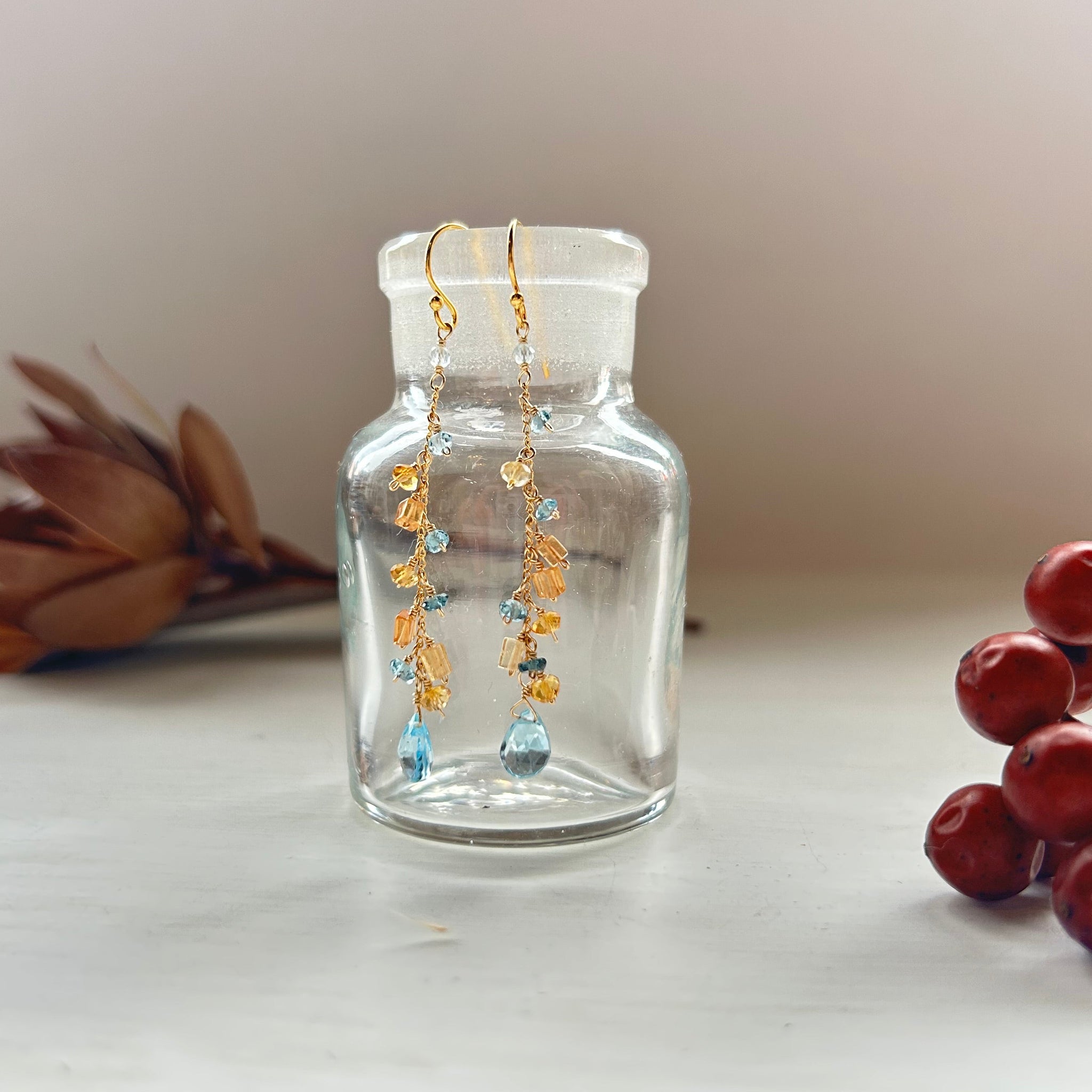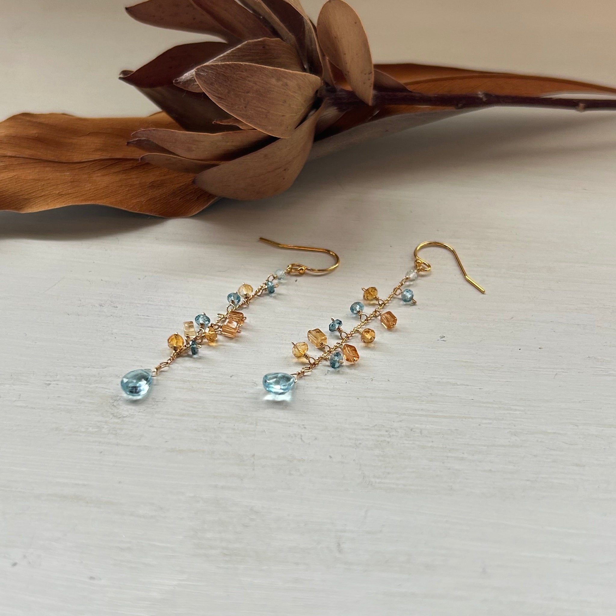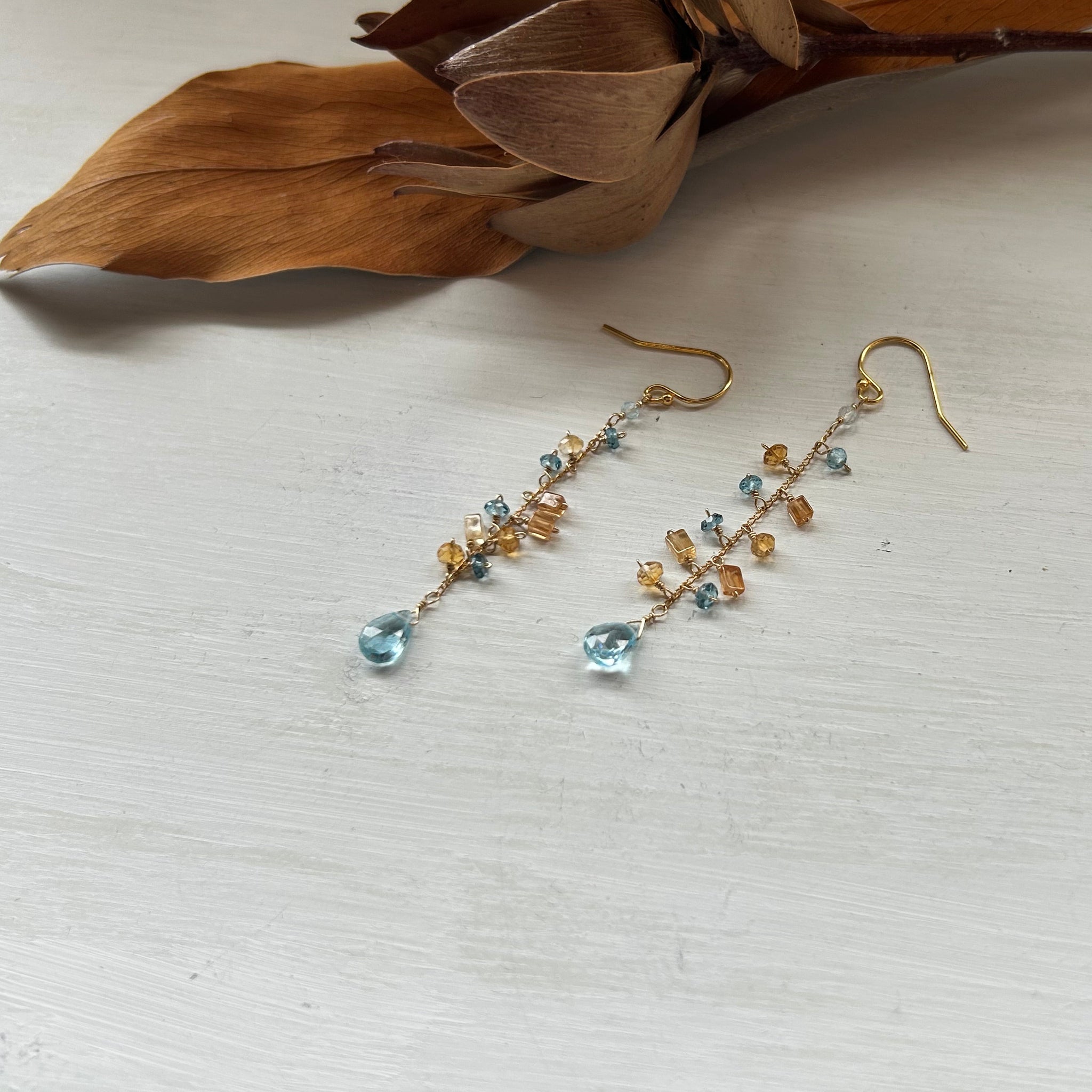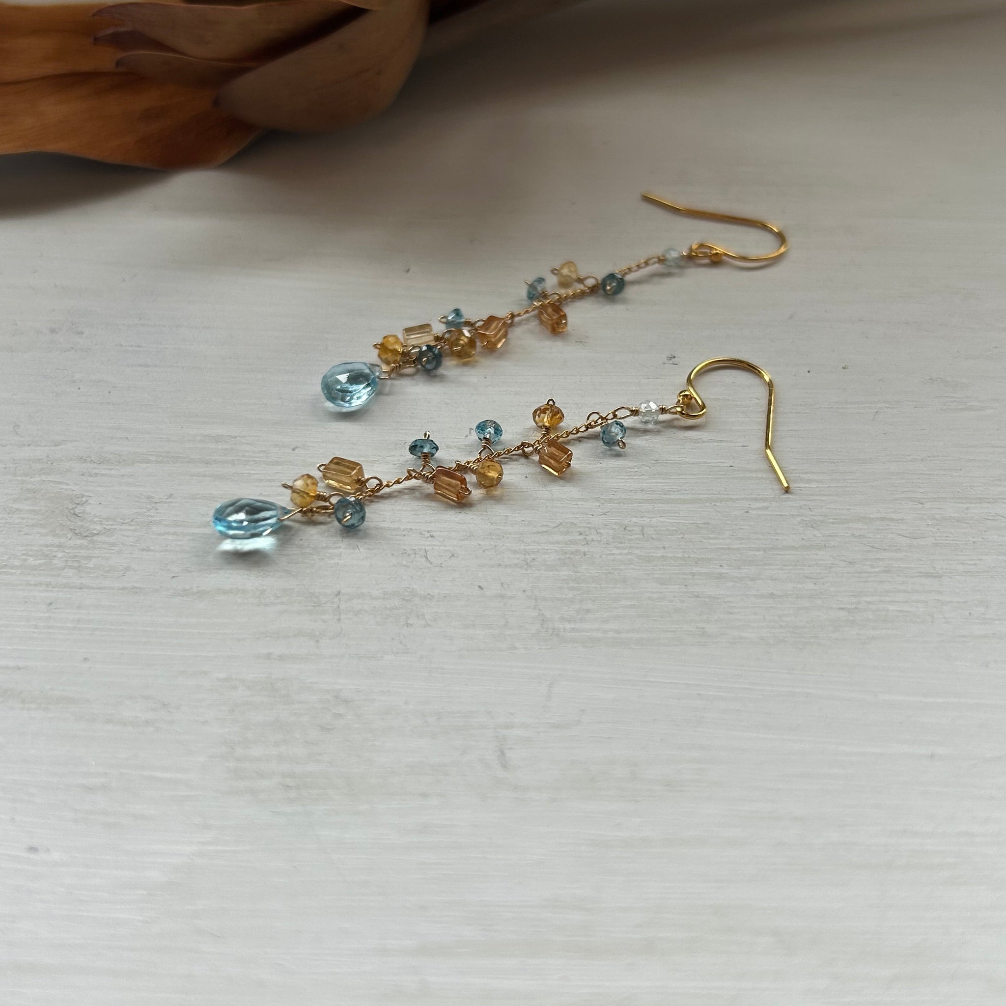 こちらは同じ11月の誕生石であるシトリンを合わせ、ブルーとオレンジのカラーがかわいいピアスに仕上げました。