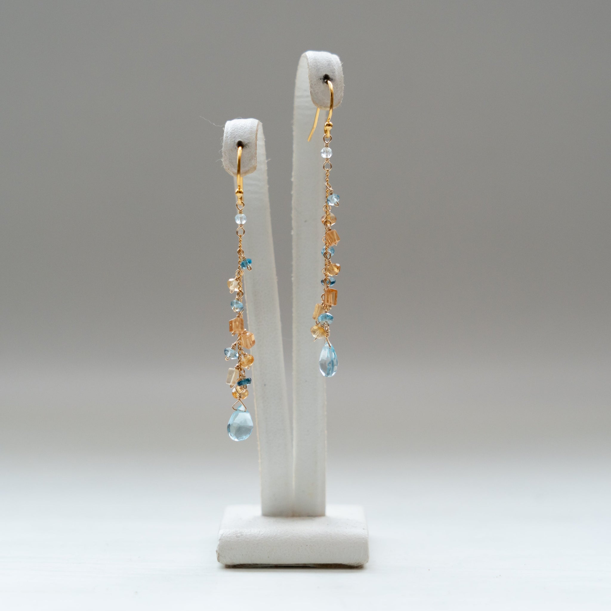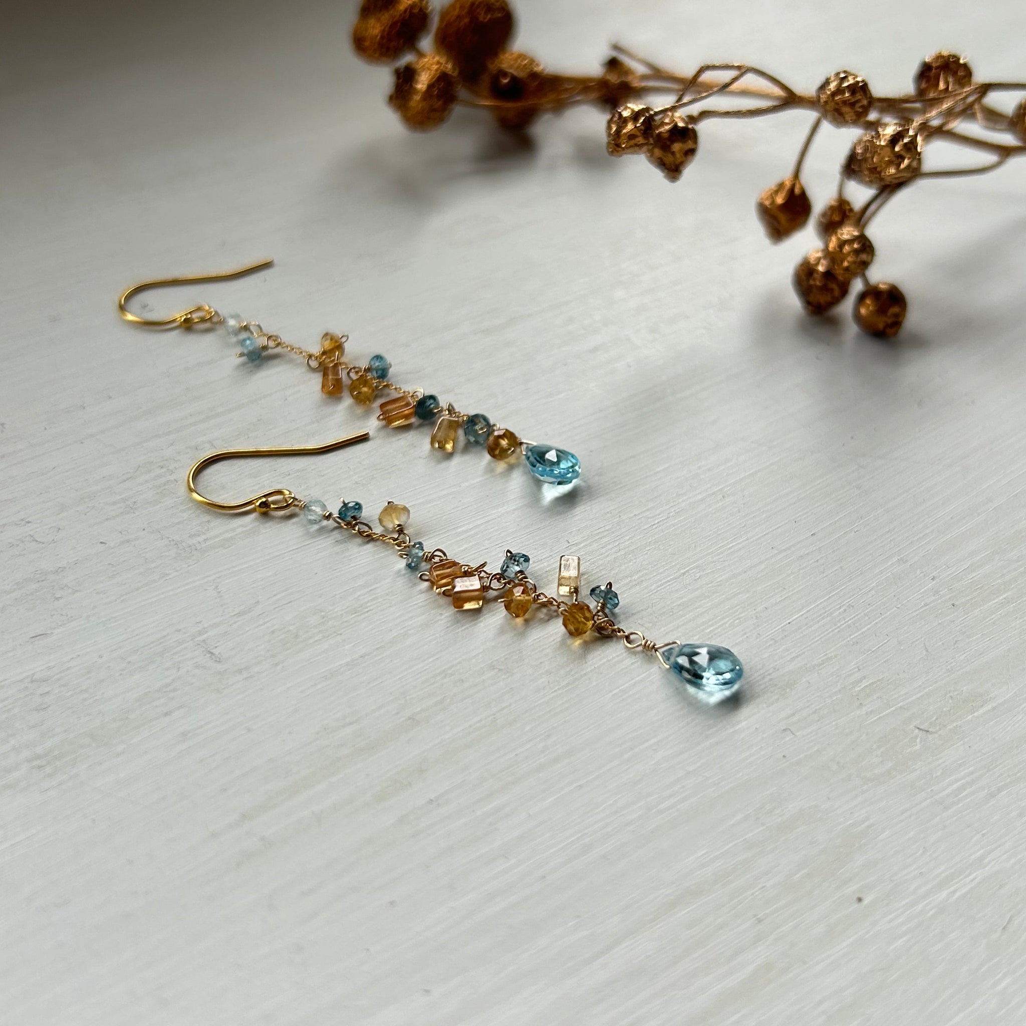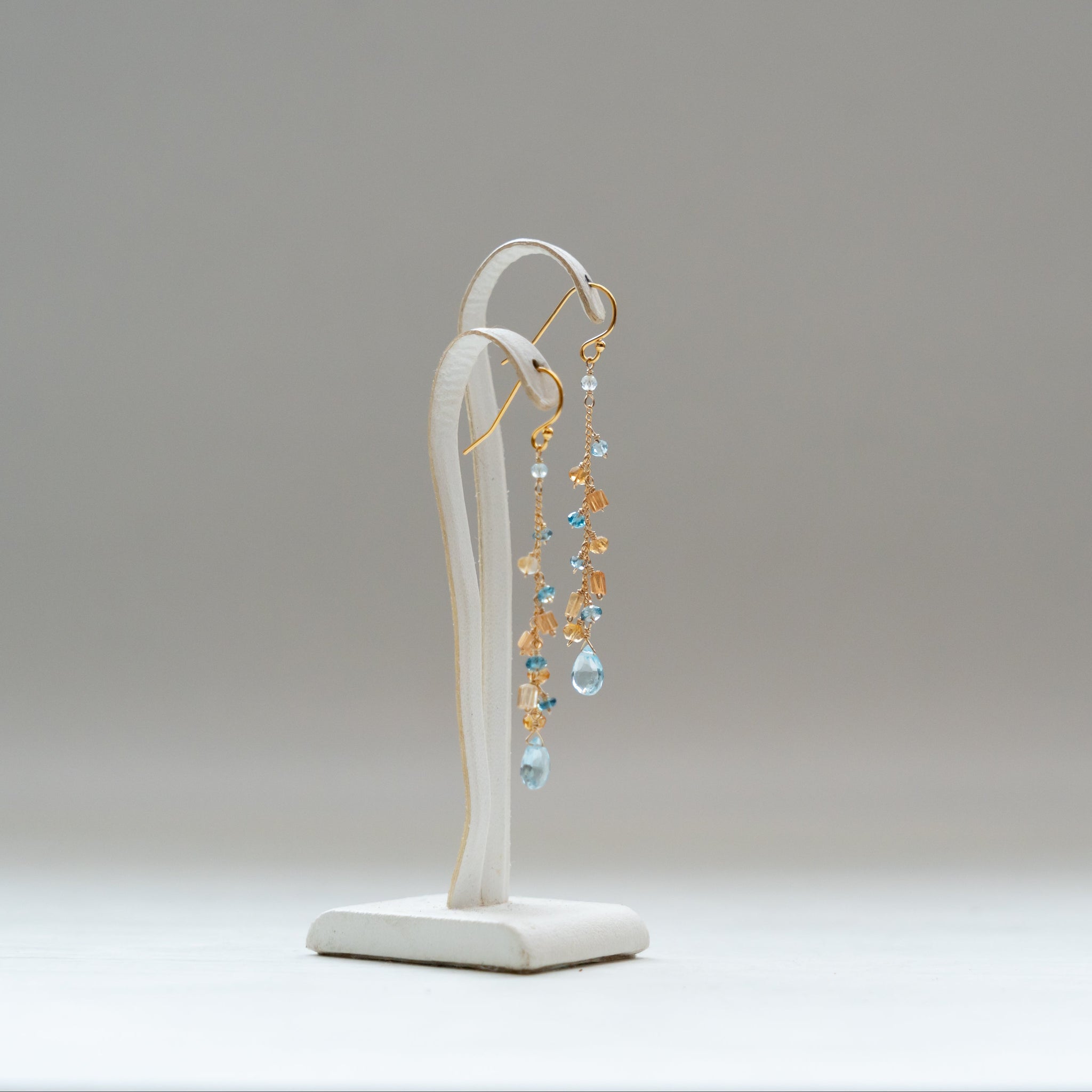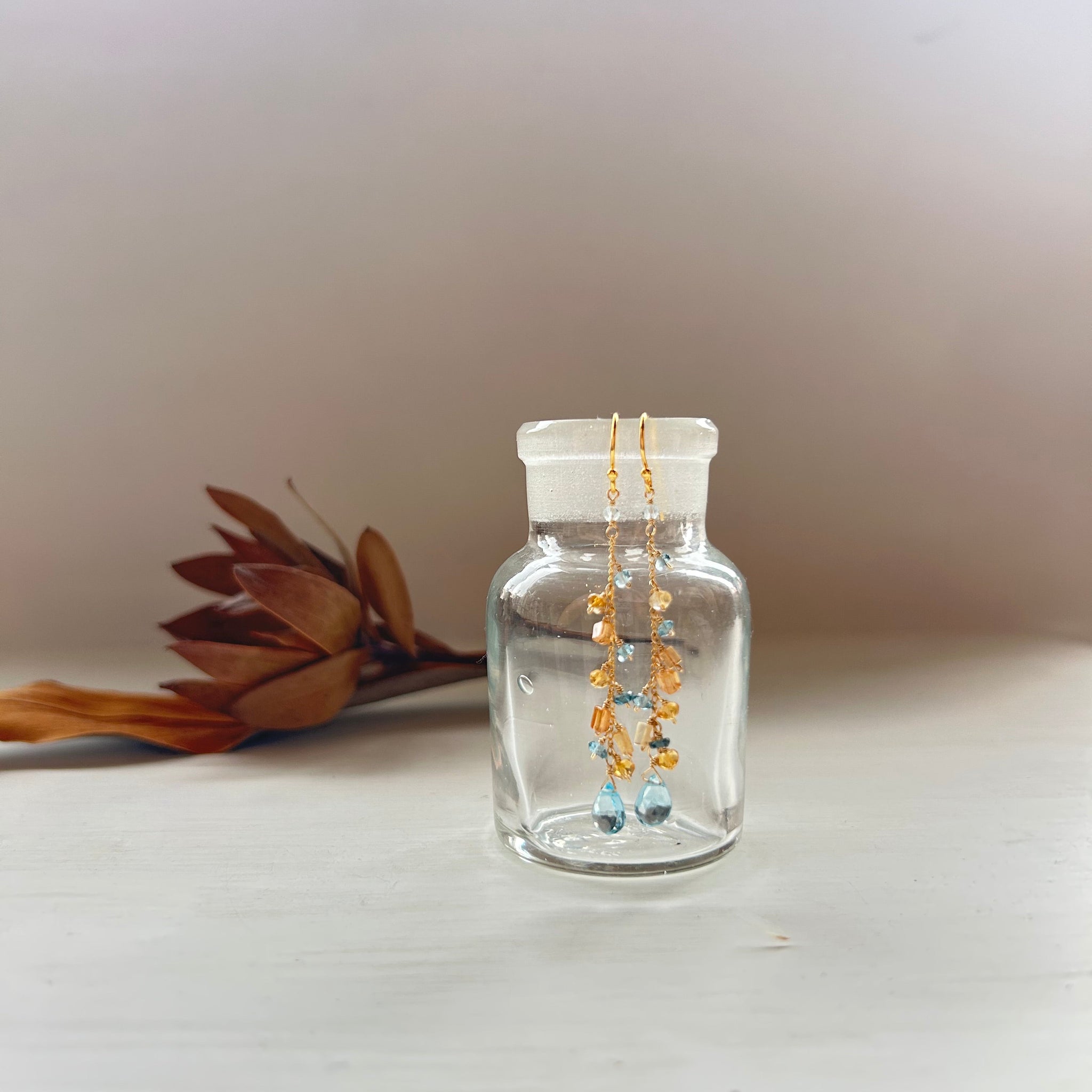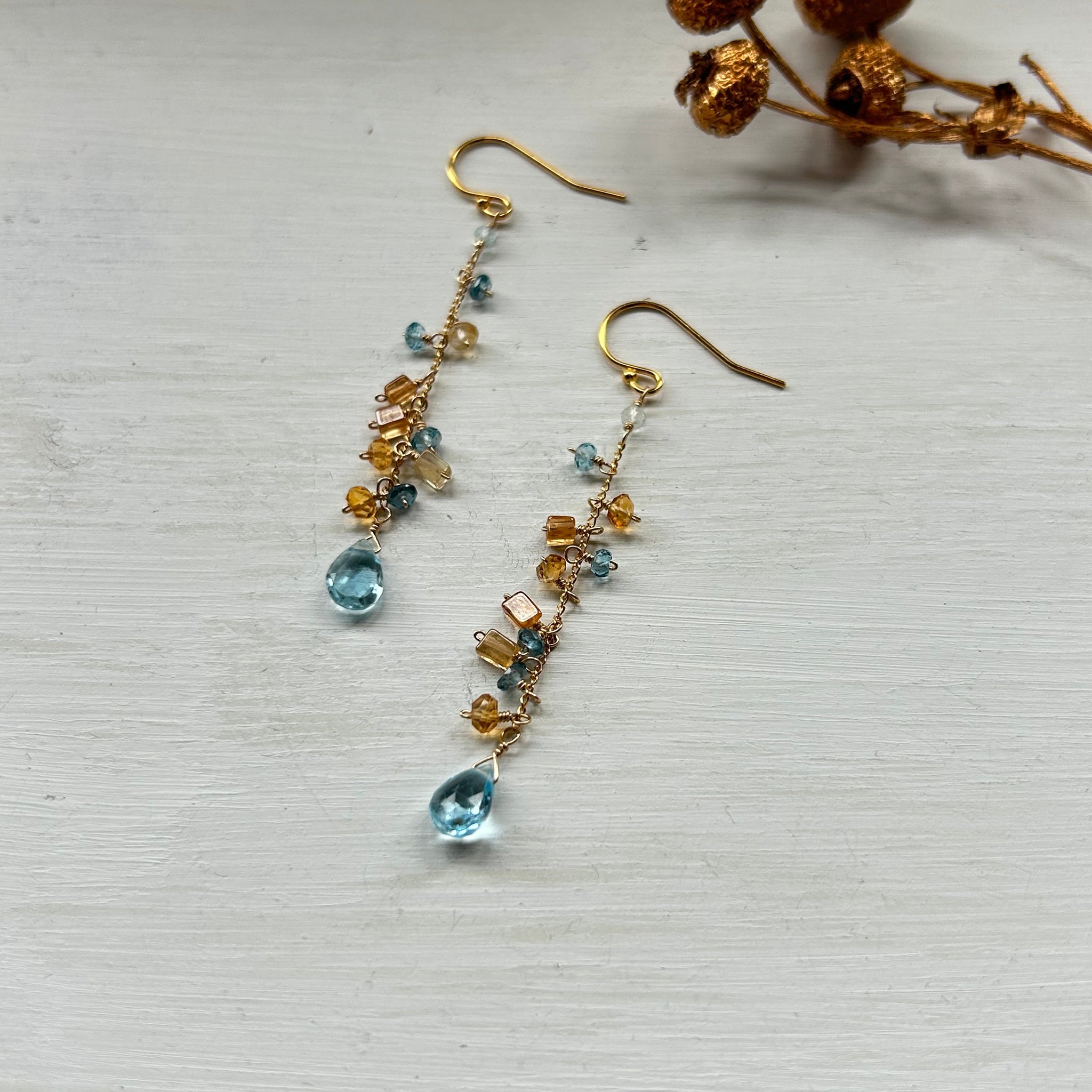 こちらは同じ11月の誕生石であるシトリンを合わせ、ブルーとオレンジのカラーがかわいいピアスに仕上げました。
