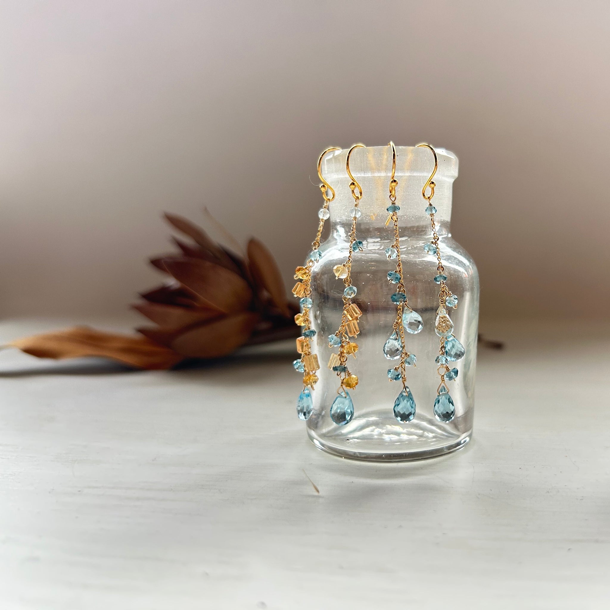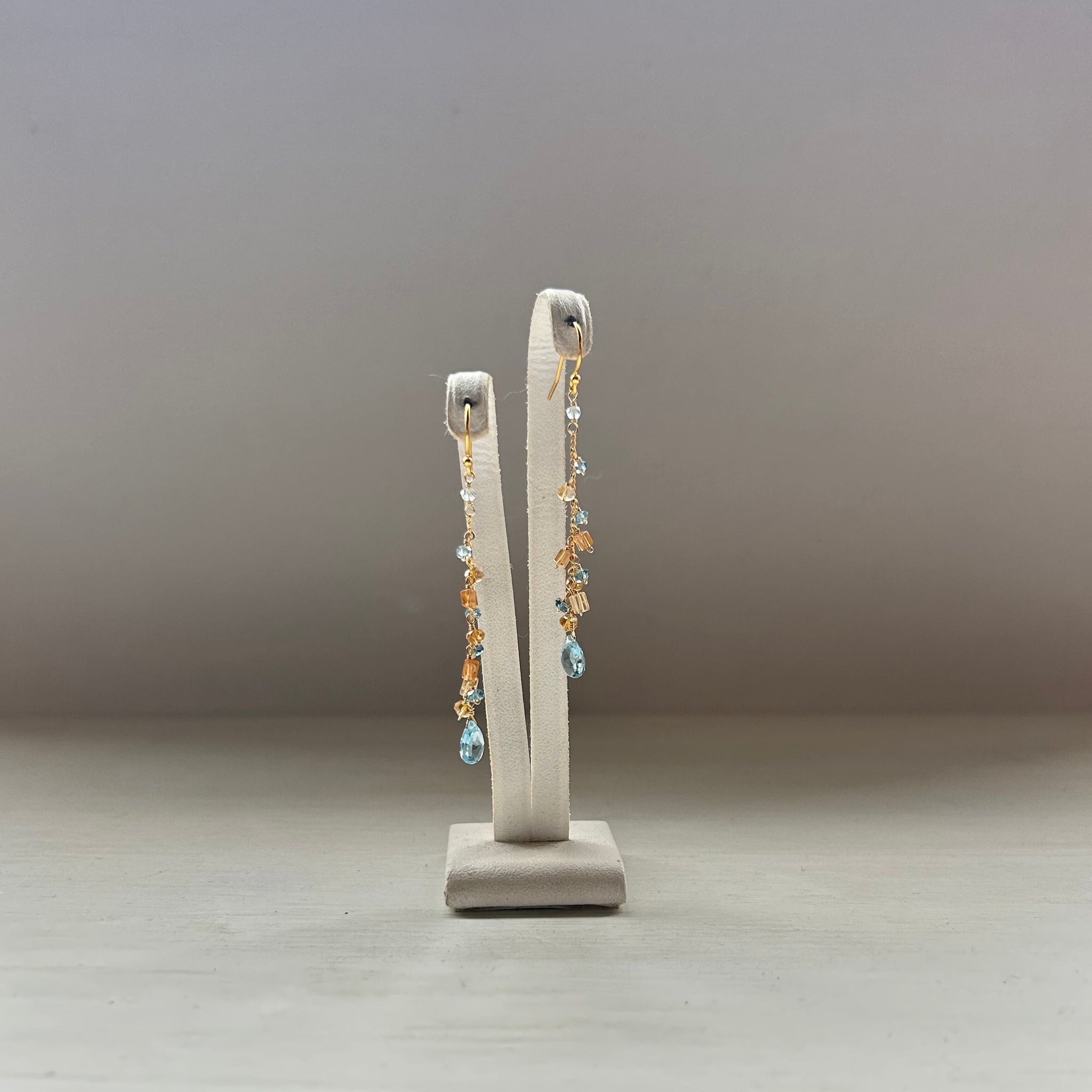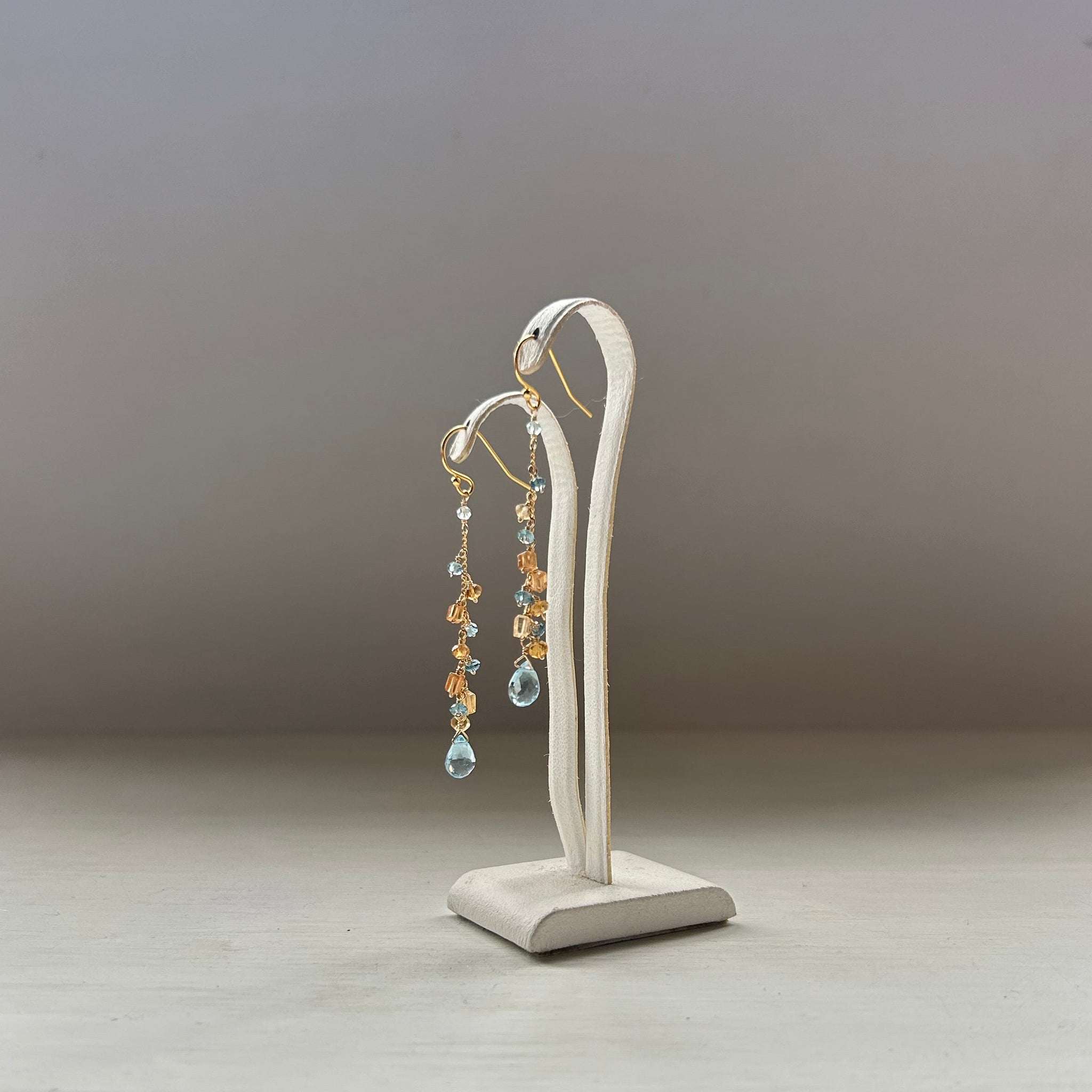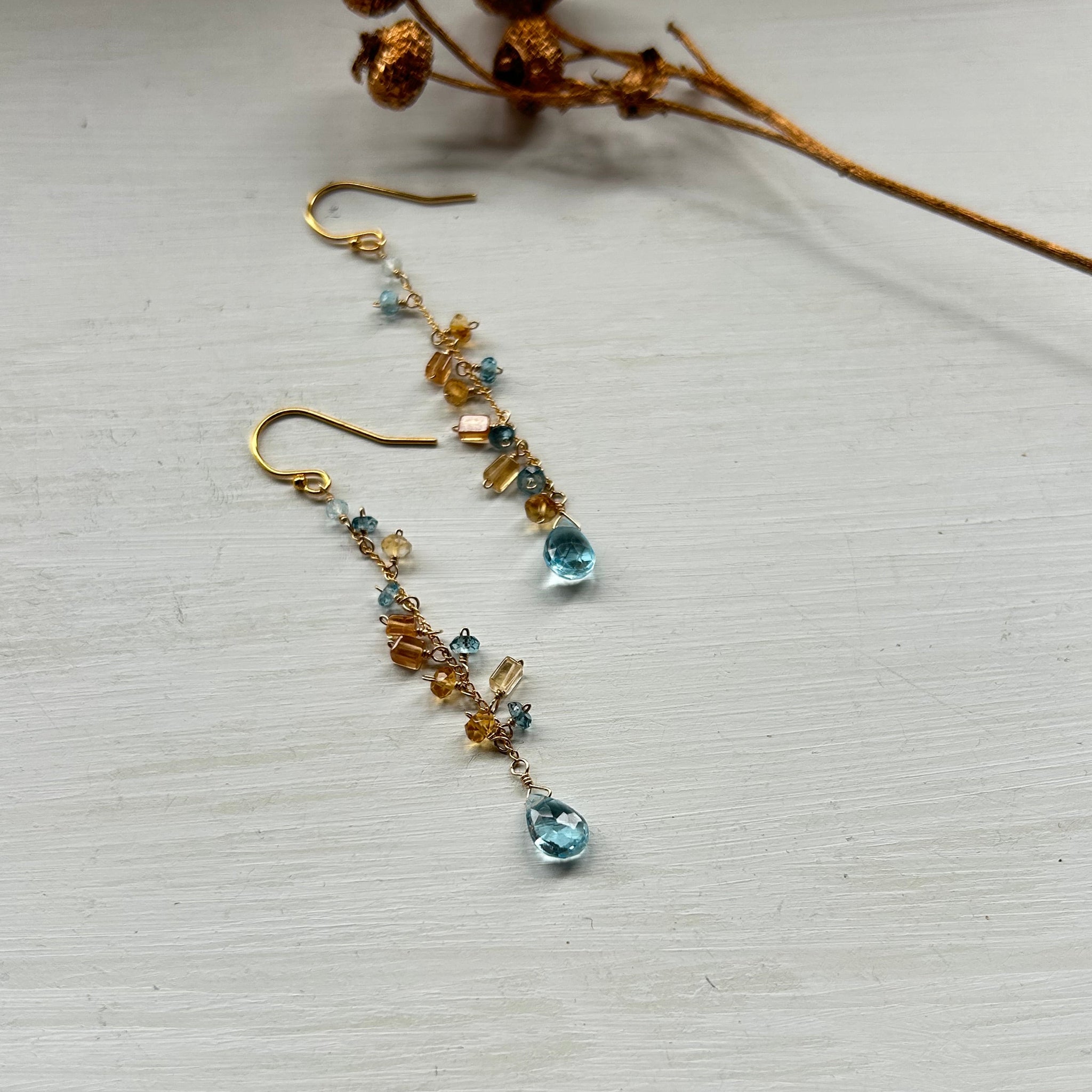 こちらは同じ11月の誕生石であるシトリンを合わせ、ブルーとオレンジのカラーがかわいいピアスに仕上げました。